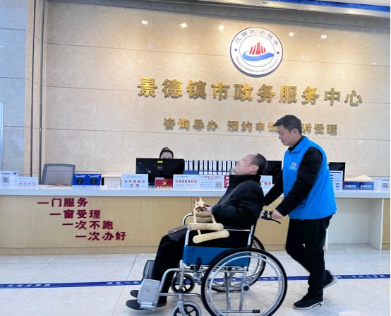 为了切实解决老年人等特殊群体面临的年老体弱、行动不便以及运用智能技术困难等实际问题,中心致力于优化服务流程,打造更加贴心、无障碍的服务环境,提升特殊群体办事体验。中心专门开辟绿色服务通道,并由“瓷都小赣事”工作队伍,提供“一站式”“一对一”服务,为特殊群体提供咨询引导、预约服务、协助填表、复印打印、指导帮助使用智能设备、业务办理、结果查询等全程帮办代办服务。在不断完善硬件配套设施的同时,还配备了纸巾、轮椅、老花镜、雨伞、应急医药箱等暖心物品,让政务服务有温度,特殊群体办事无难度。