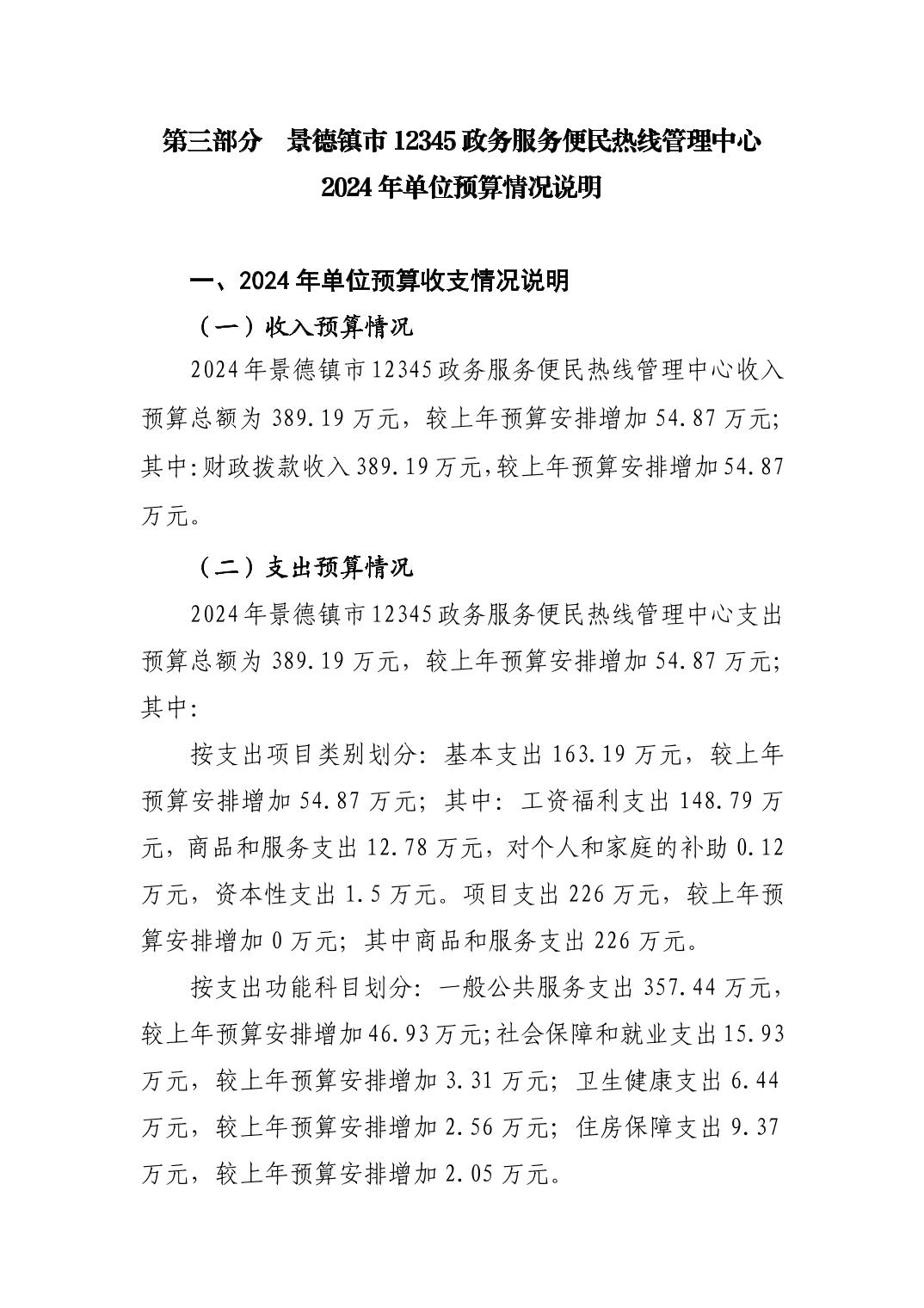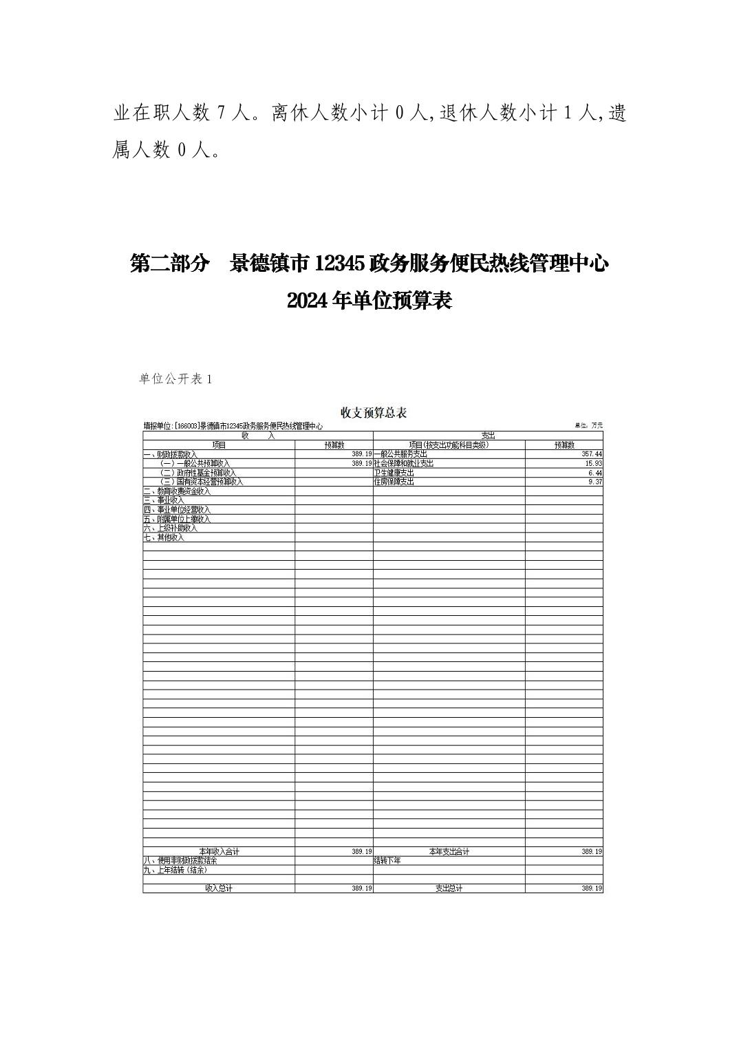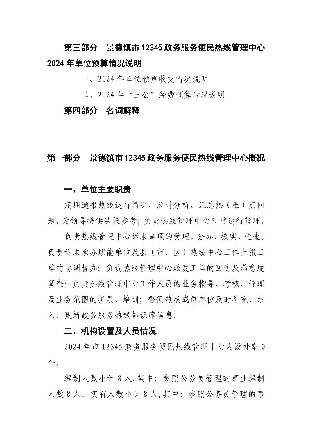 景德镇市12345政务服务便民热线管理中心2024年单位预算