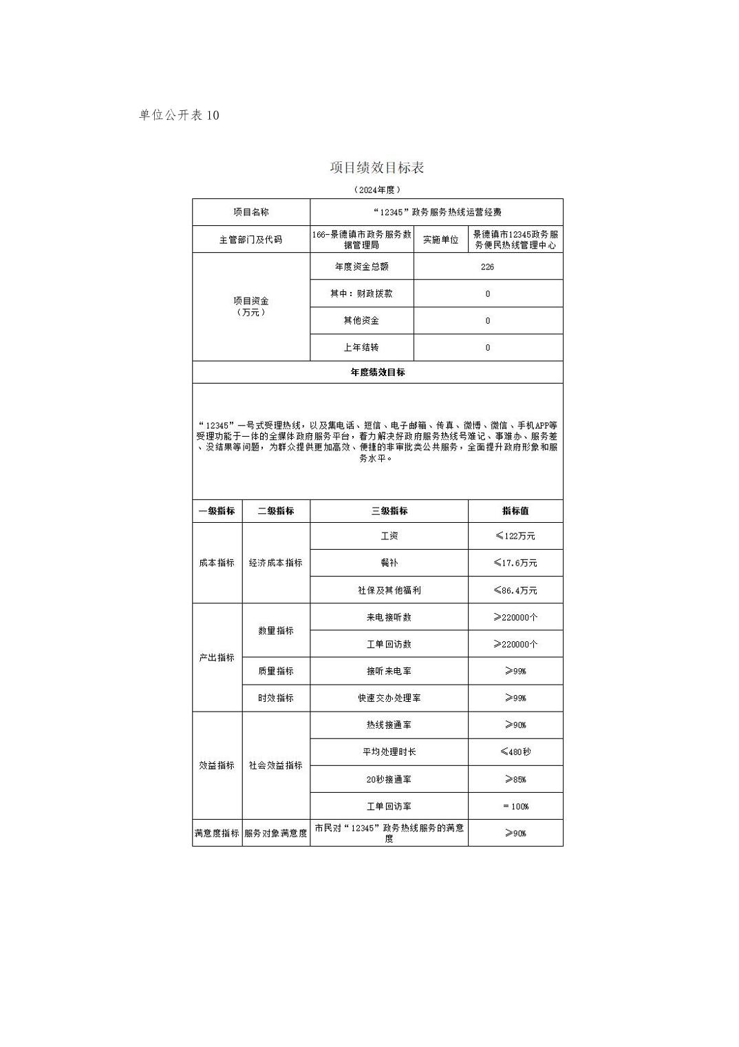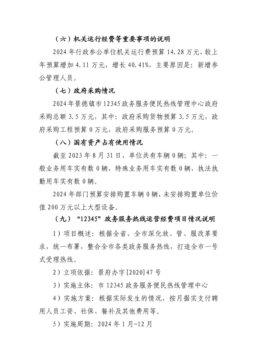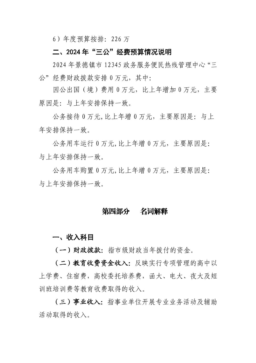 景德镇市12345政务服务便民热线管理中心2024年单位预算