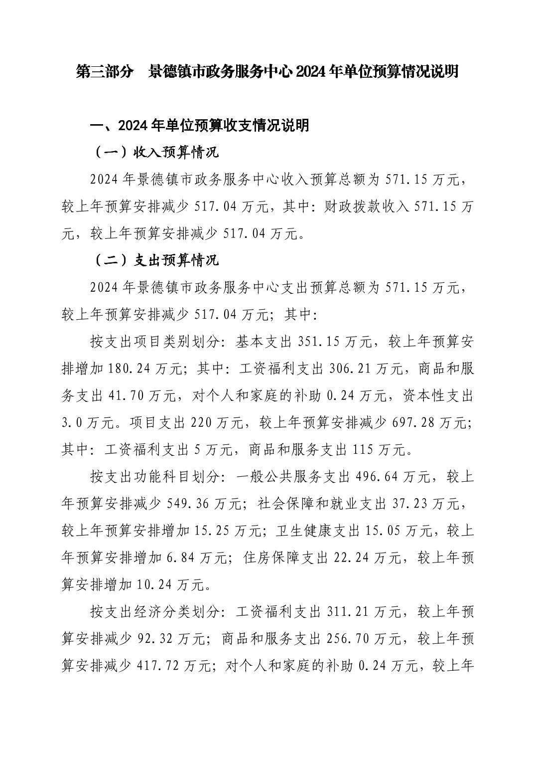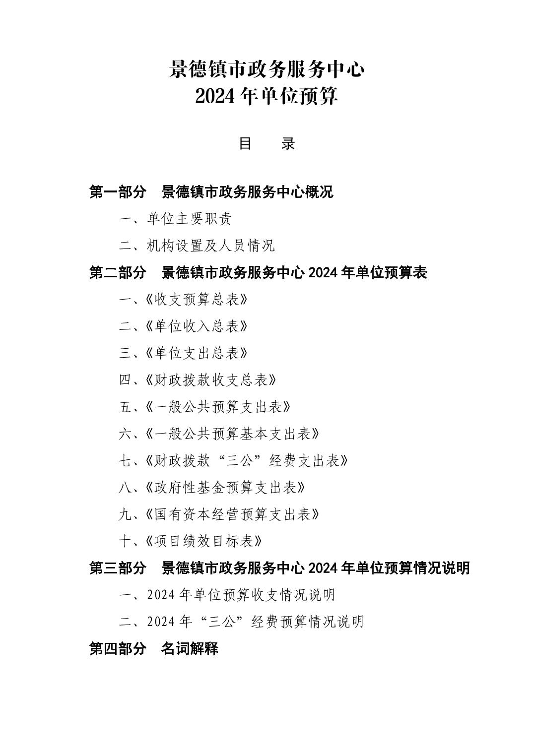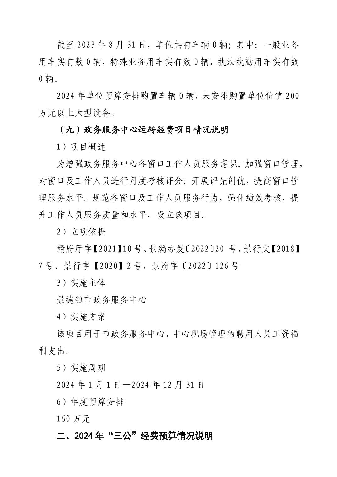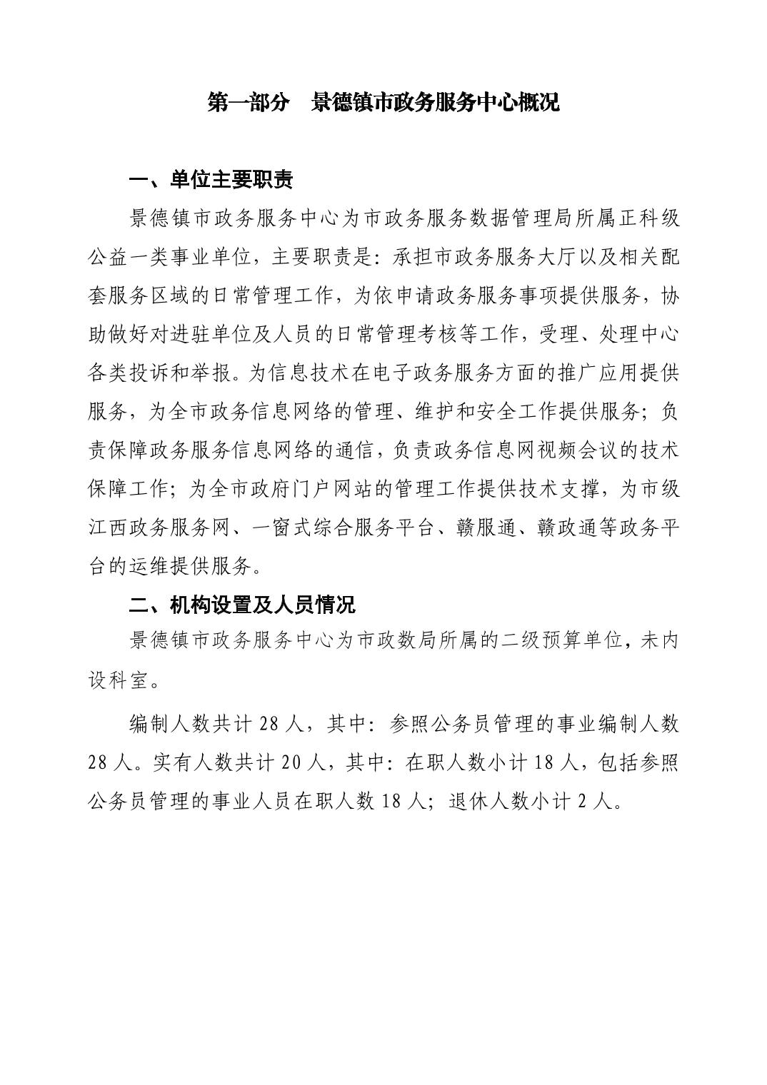 景德镇市政务服务中心2024年单位预算
