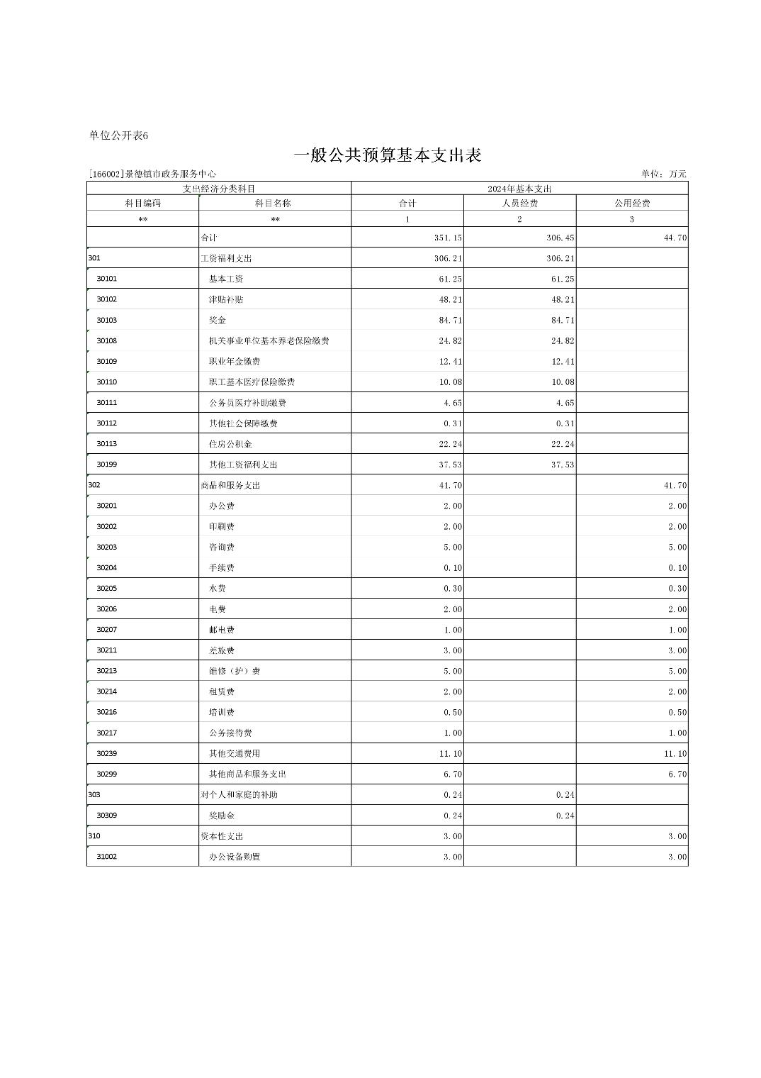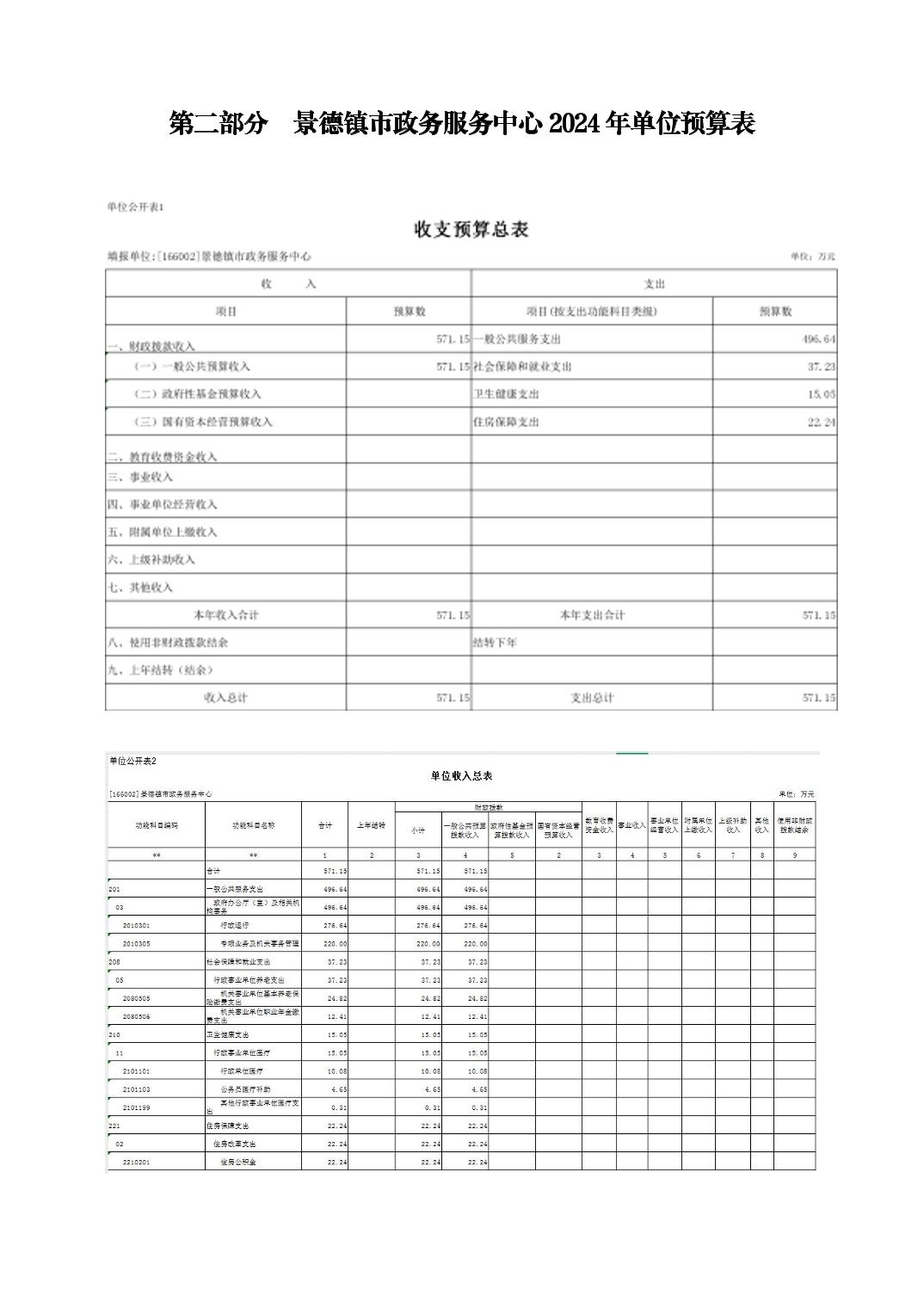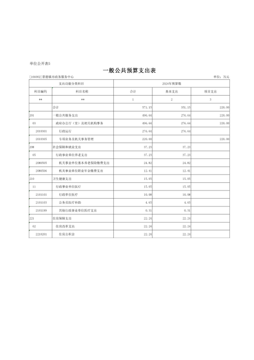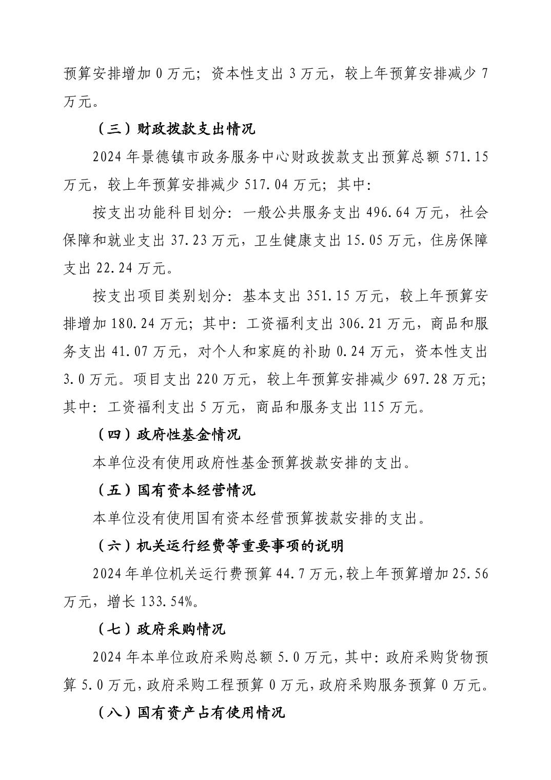 景德镇市政务服务中心2024年单位预算