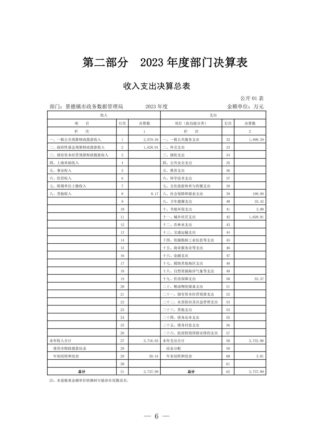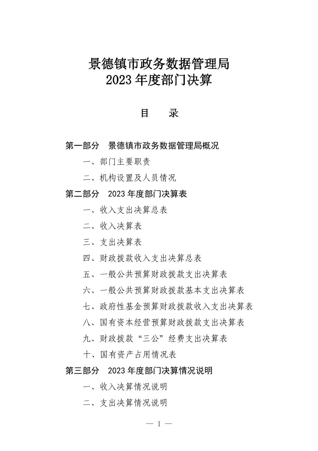 景德镇市政务数据管理局2023年部门决算