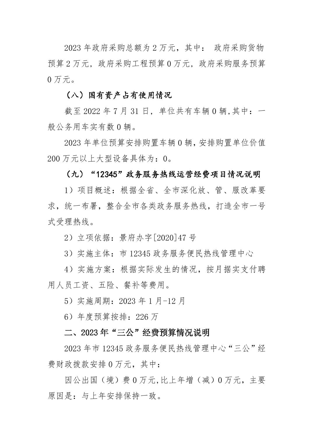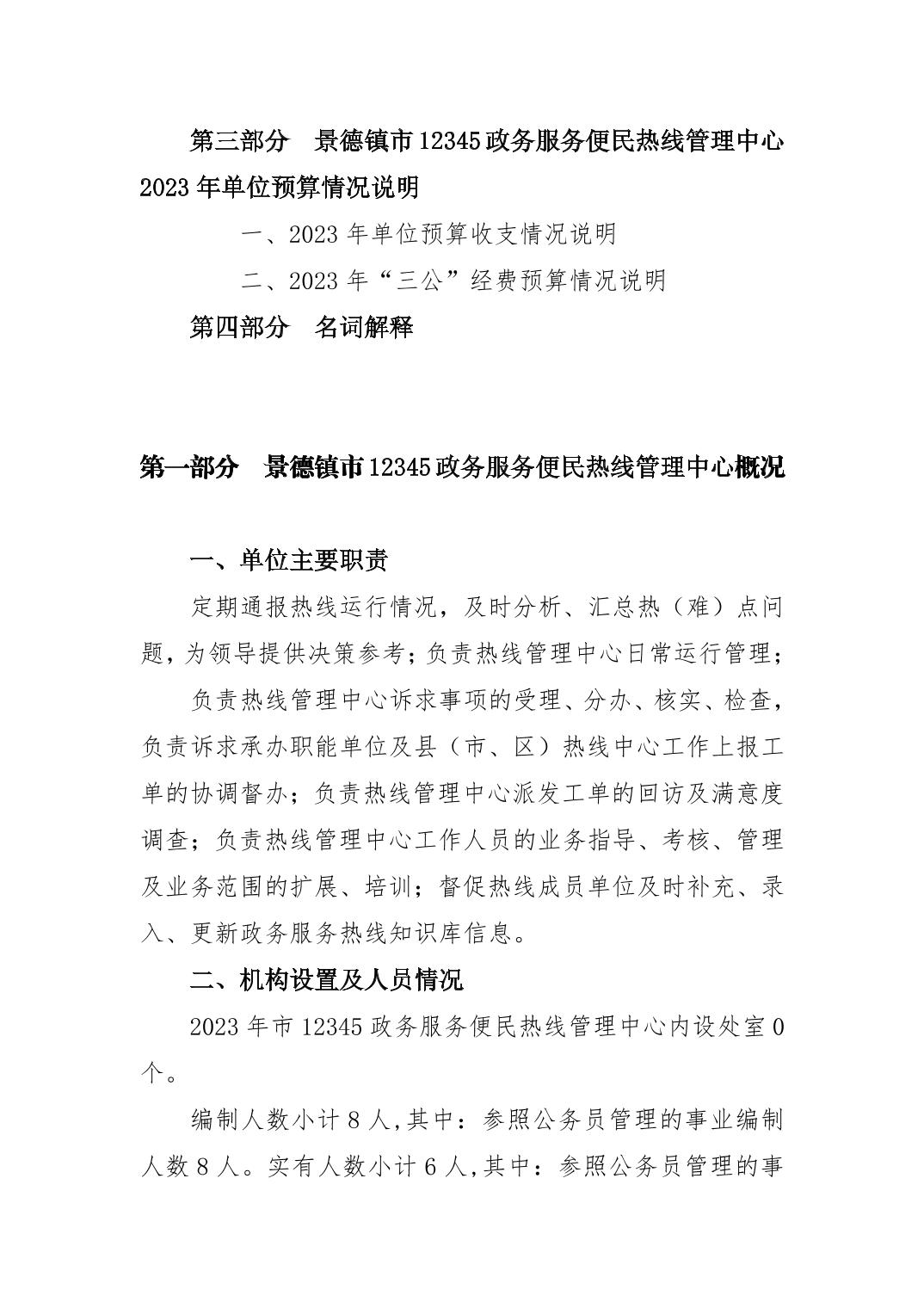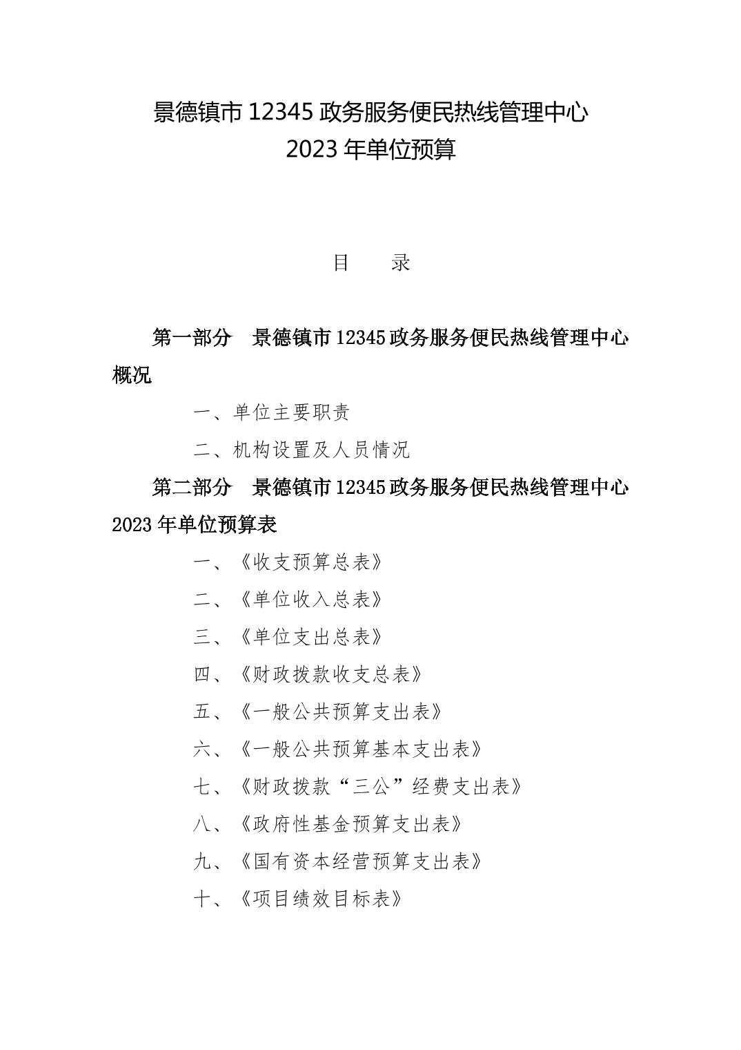 景德镇市12345政务服务便民热线管理中心单位预算