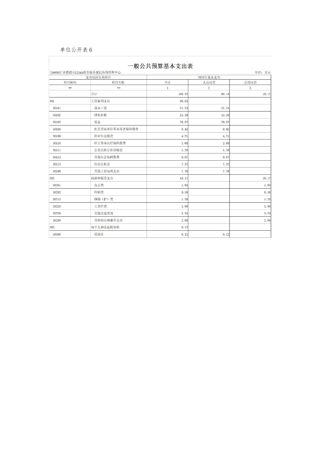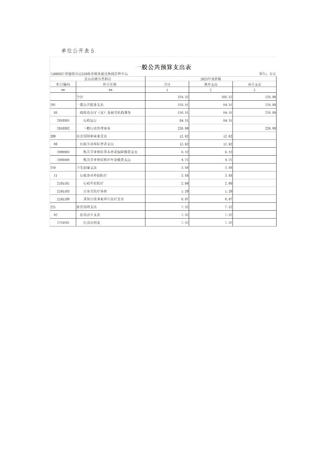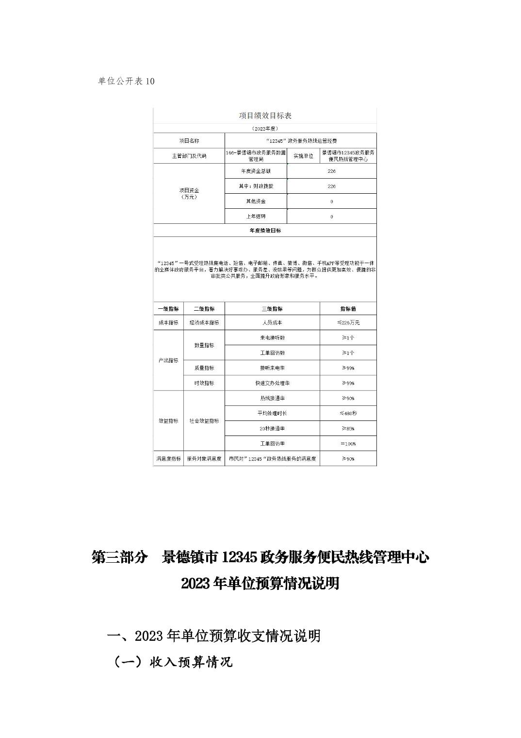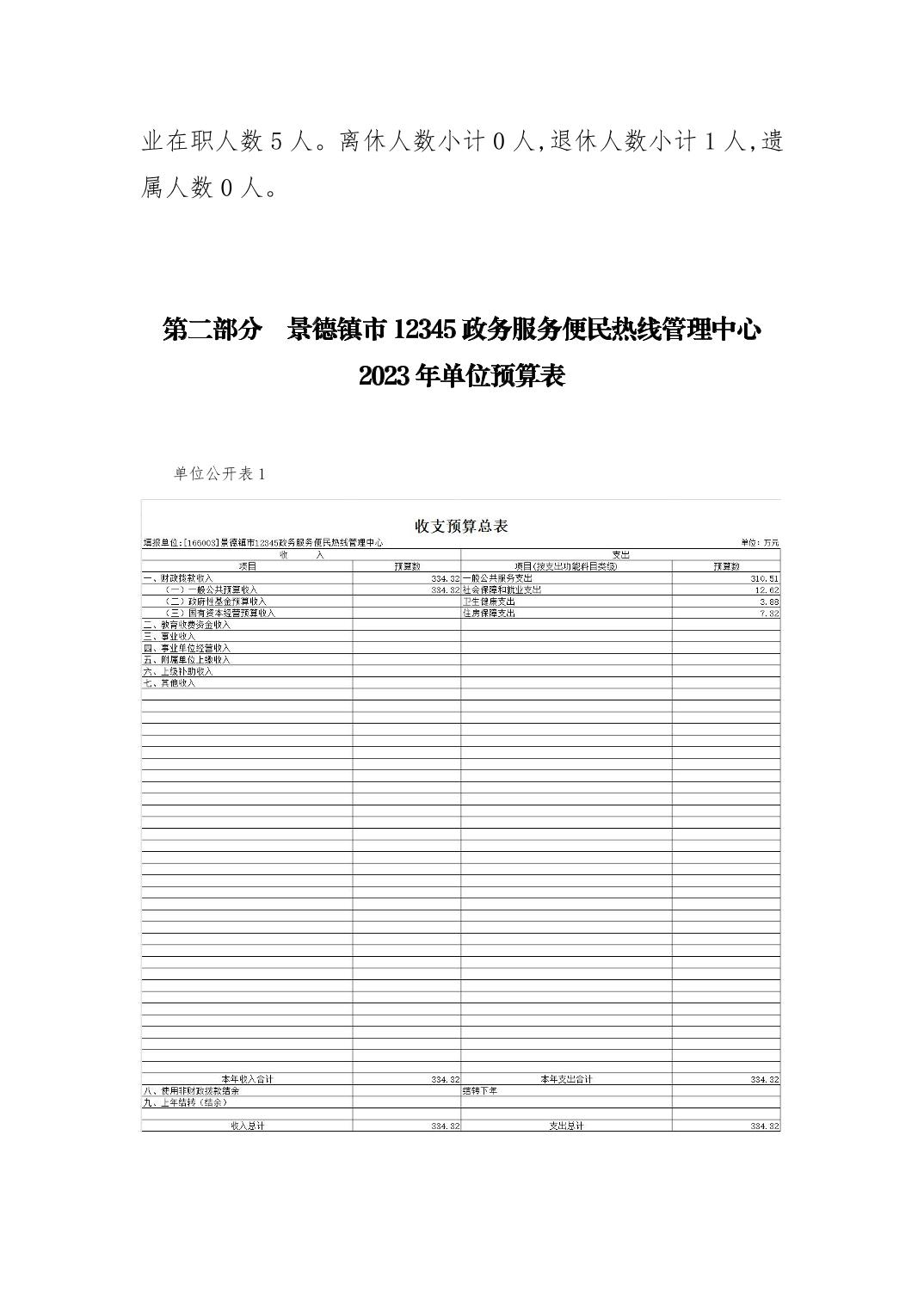 景德镇市12345政务服务便民热线管理中心单位预算
