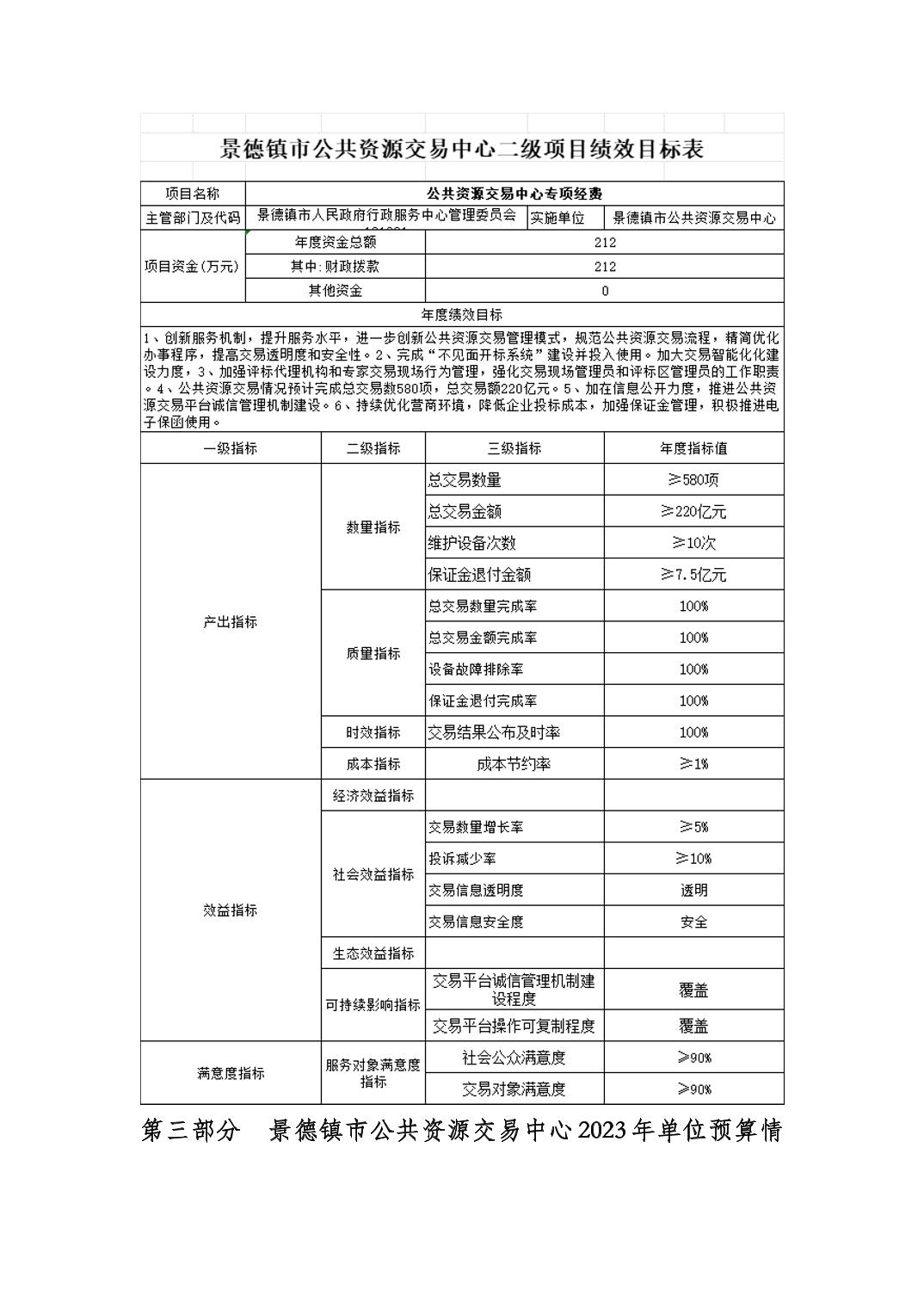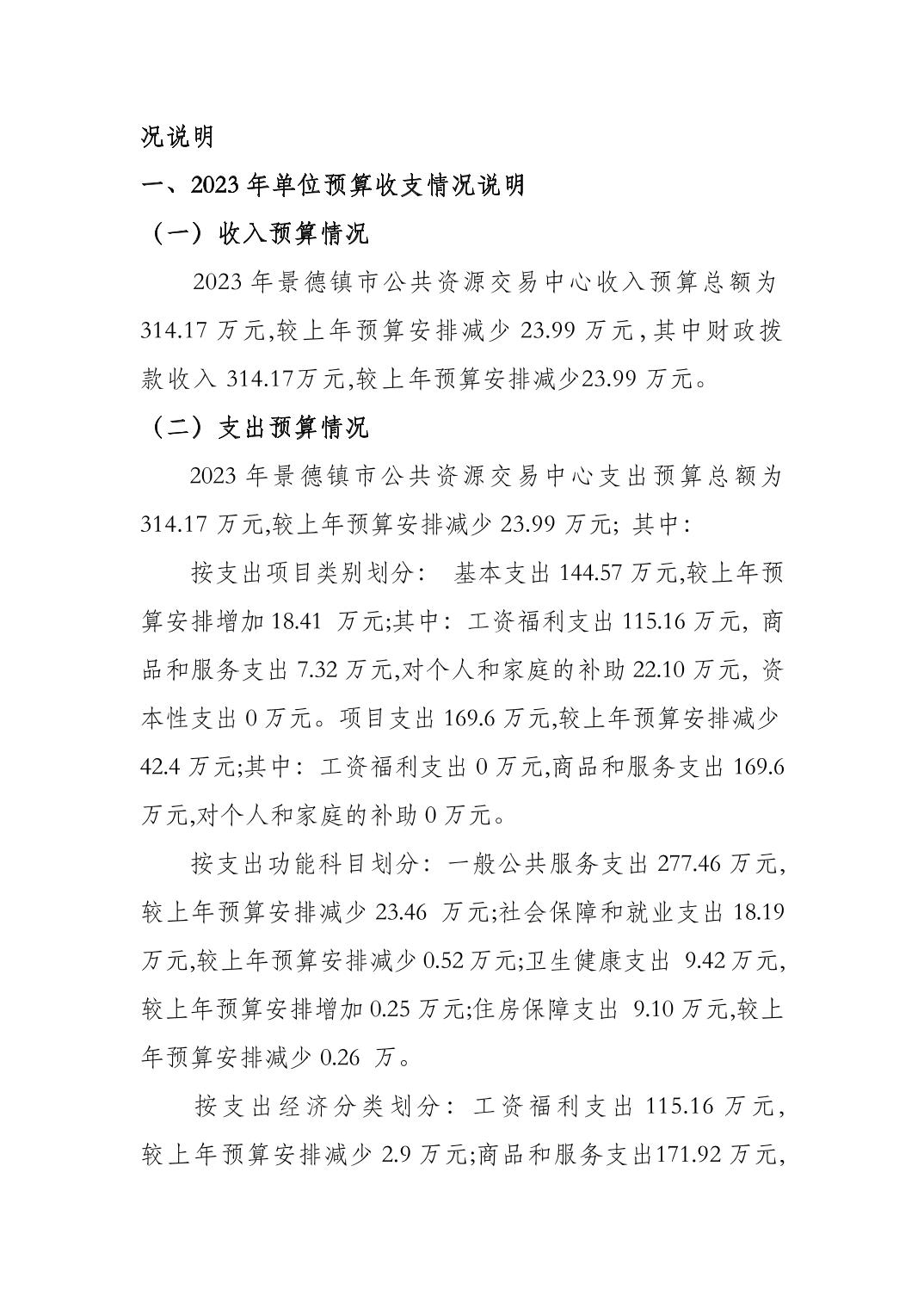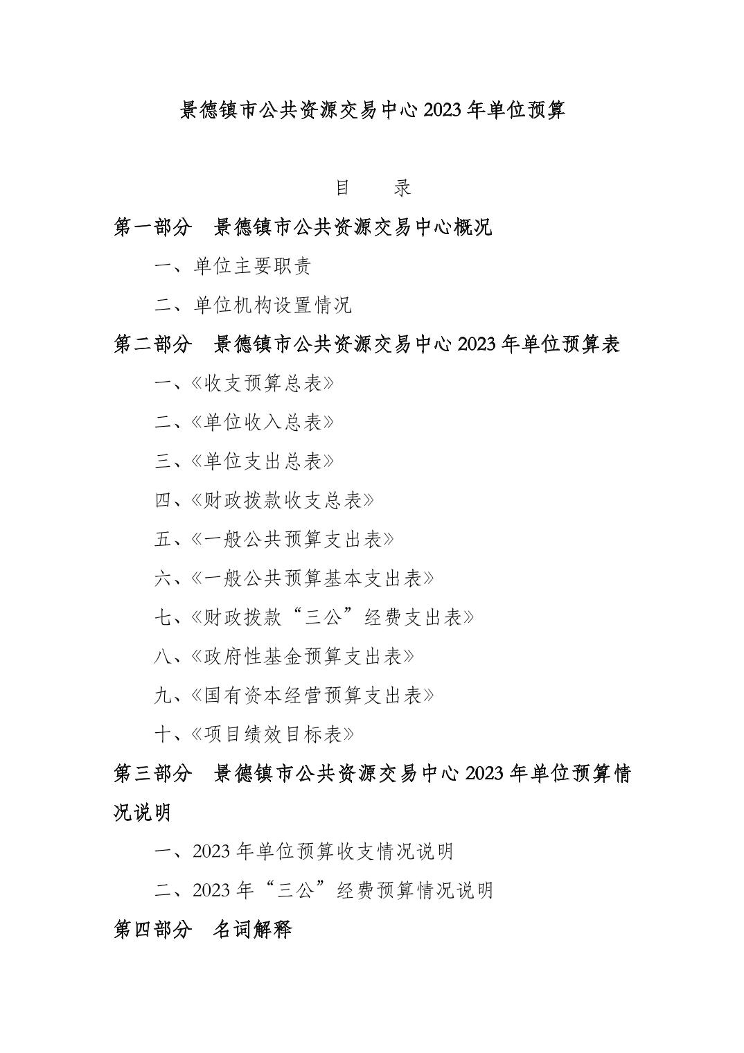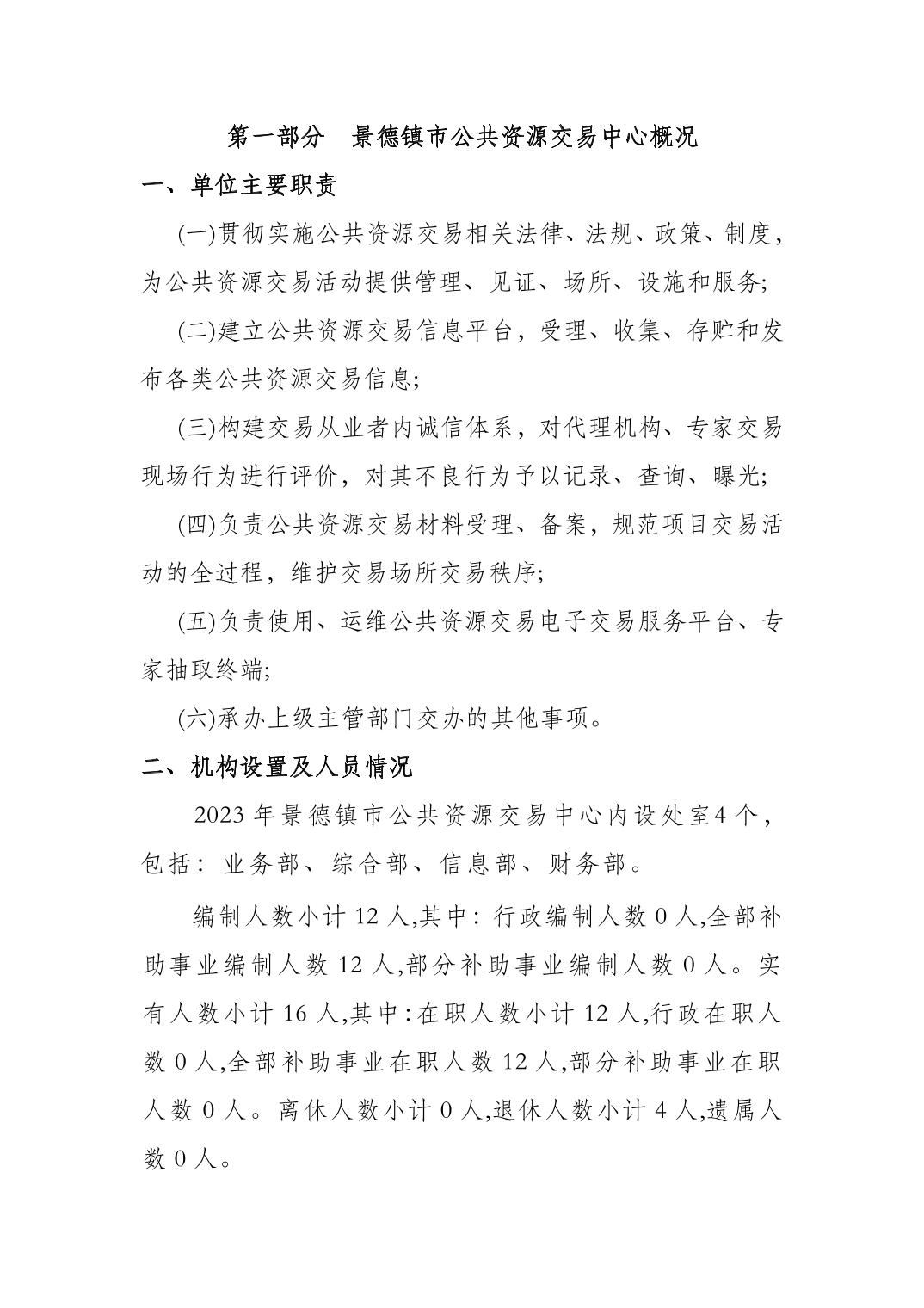 景德镇市公共资源交易中心2023年单位预算公开