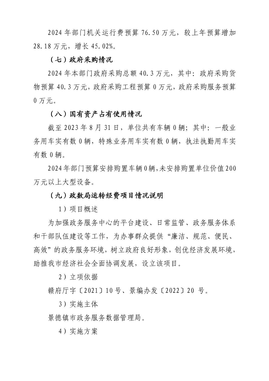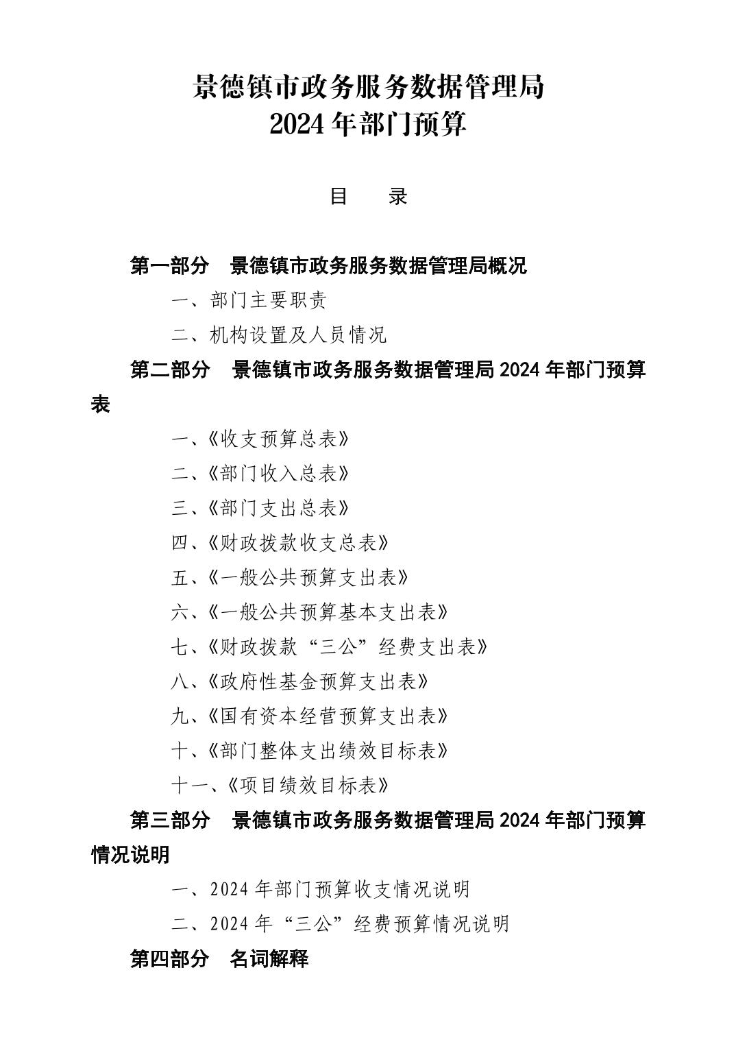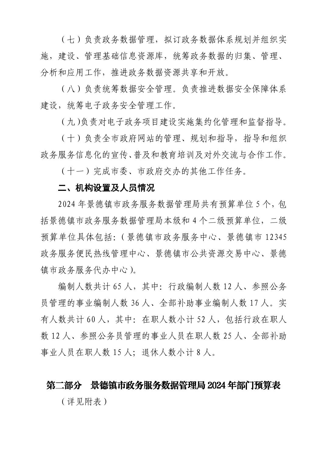 景德镇市政务服务数据管理局2024年部门预算