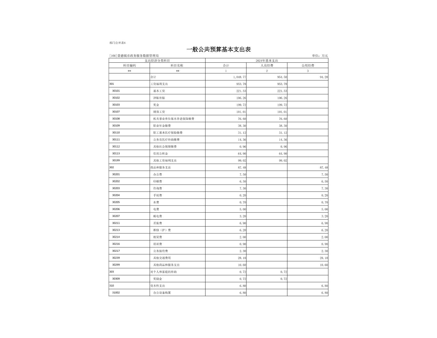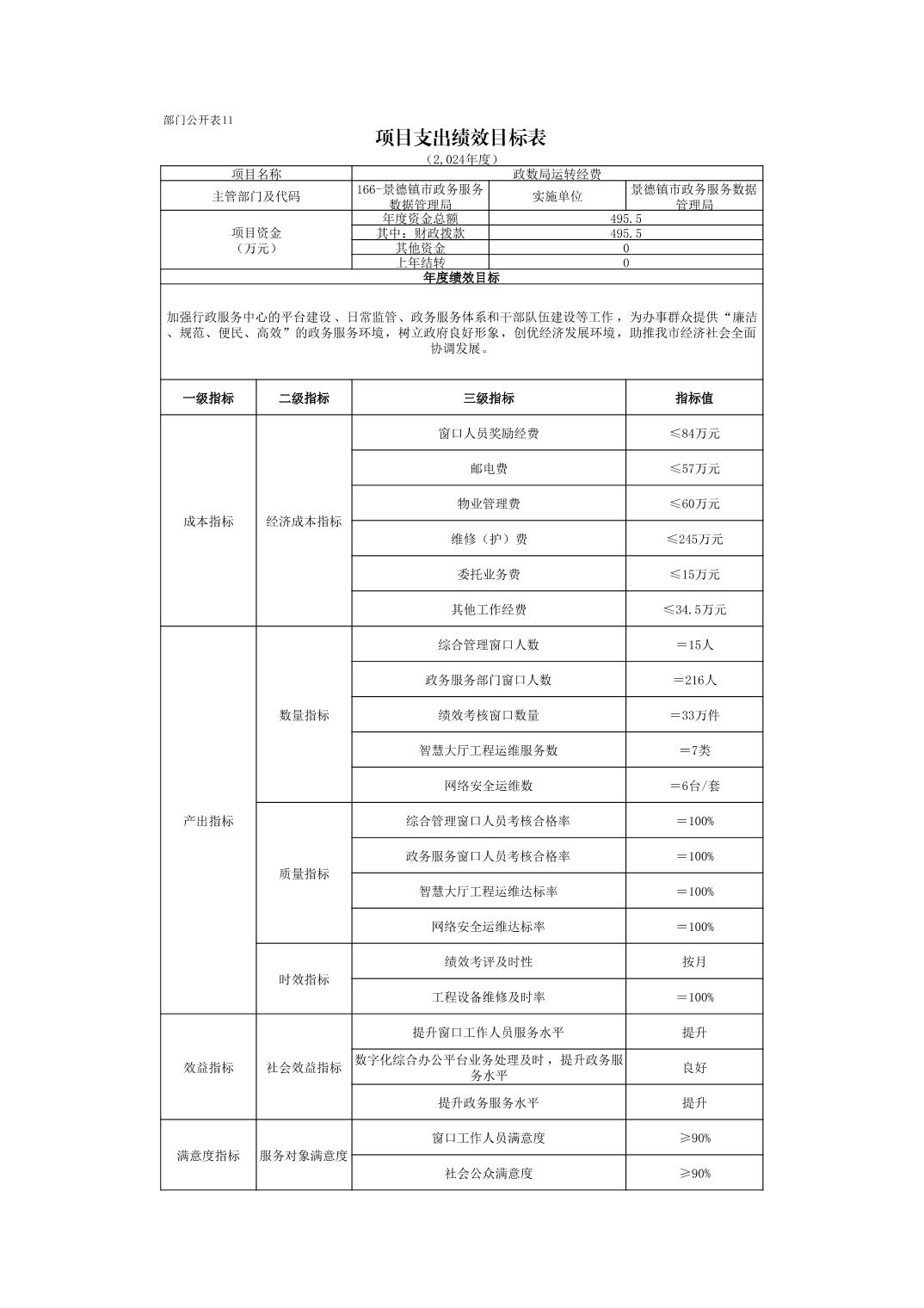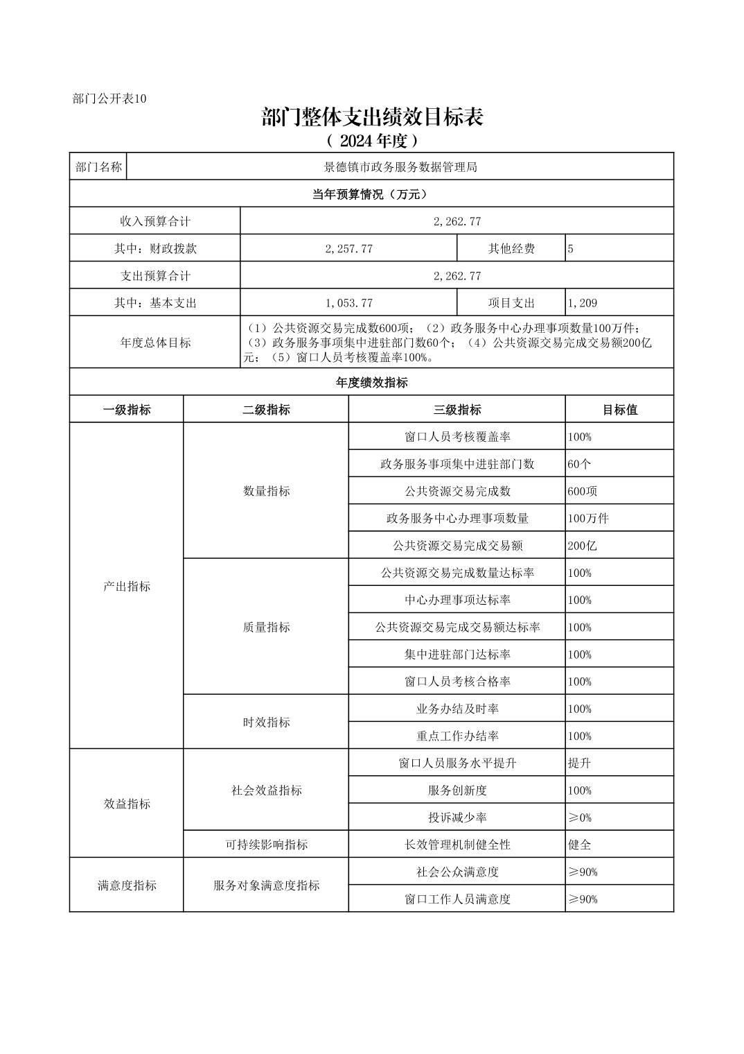 景德镇市政务服务数据管理局2024年部门预算