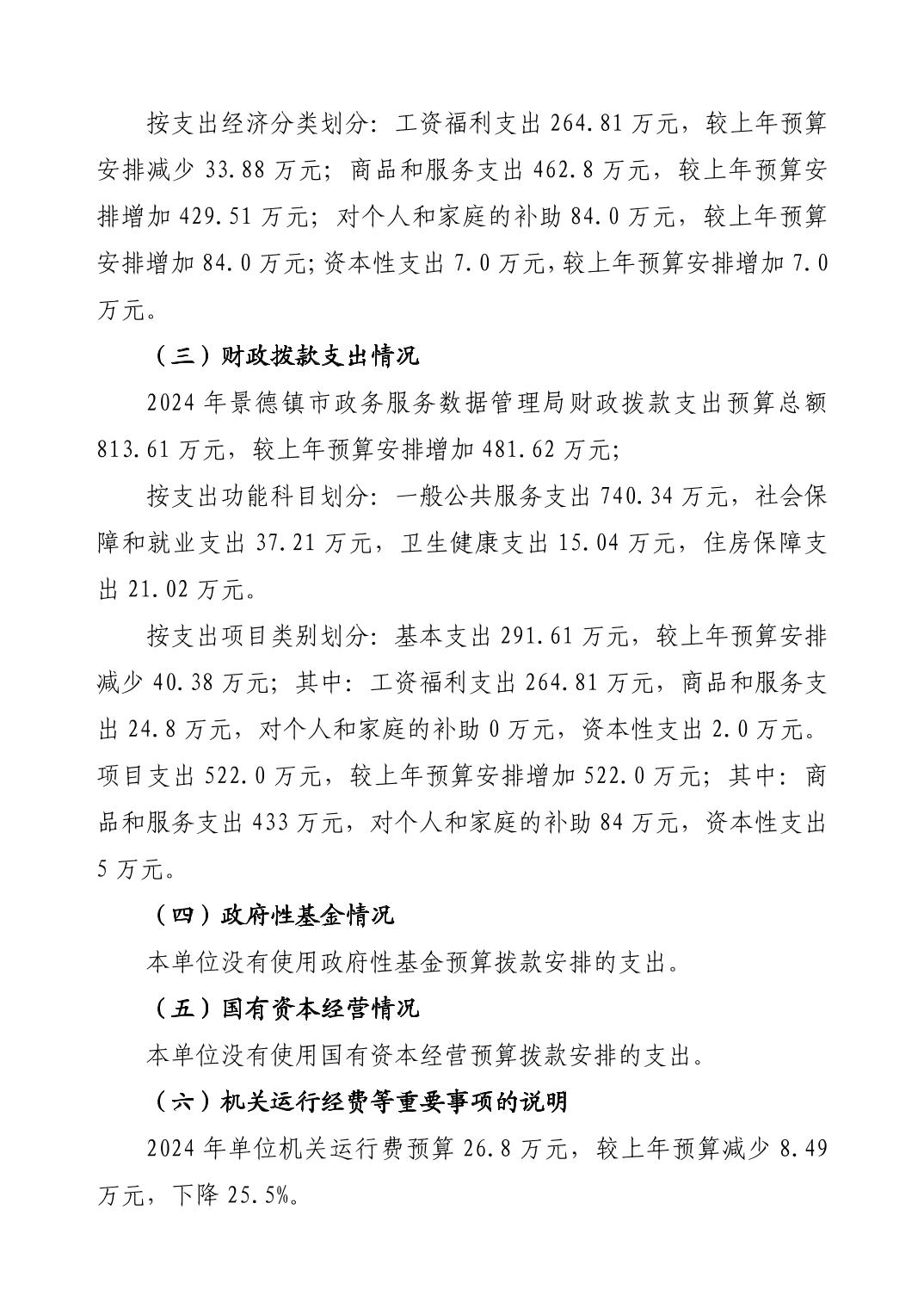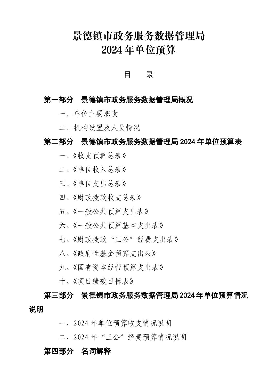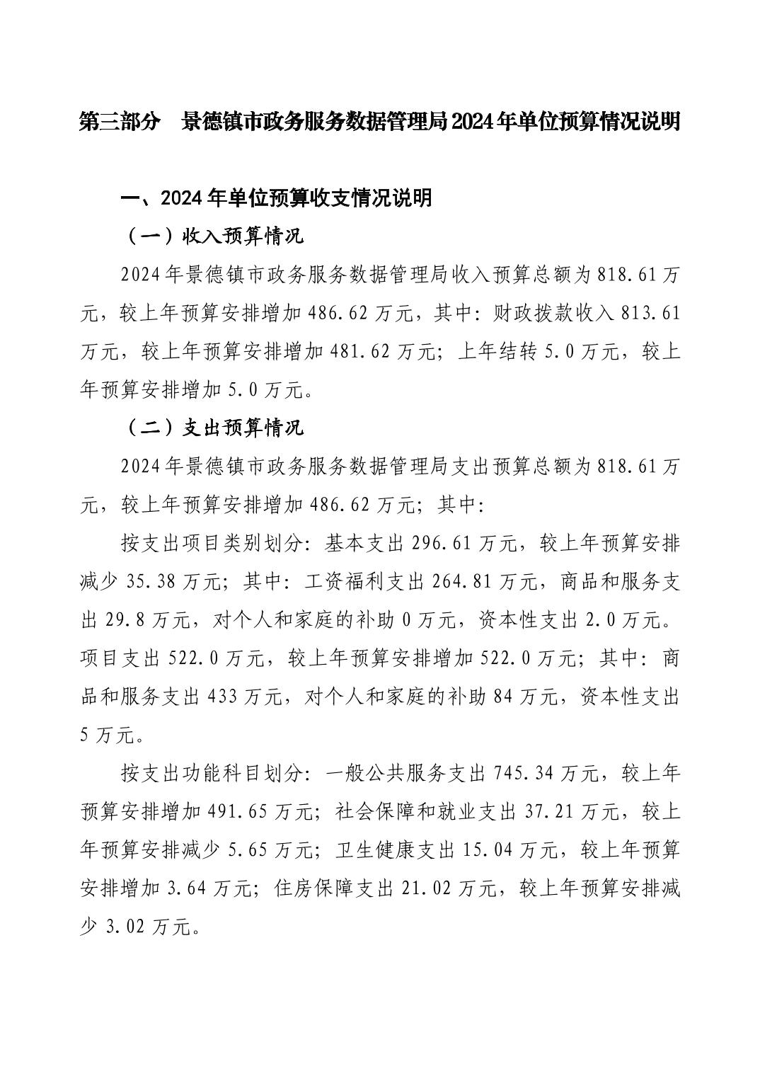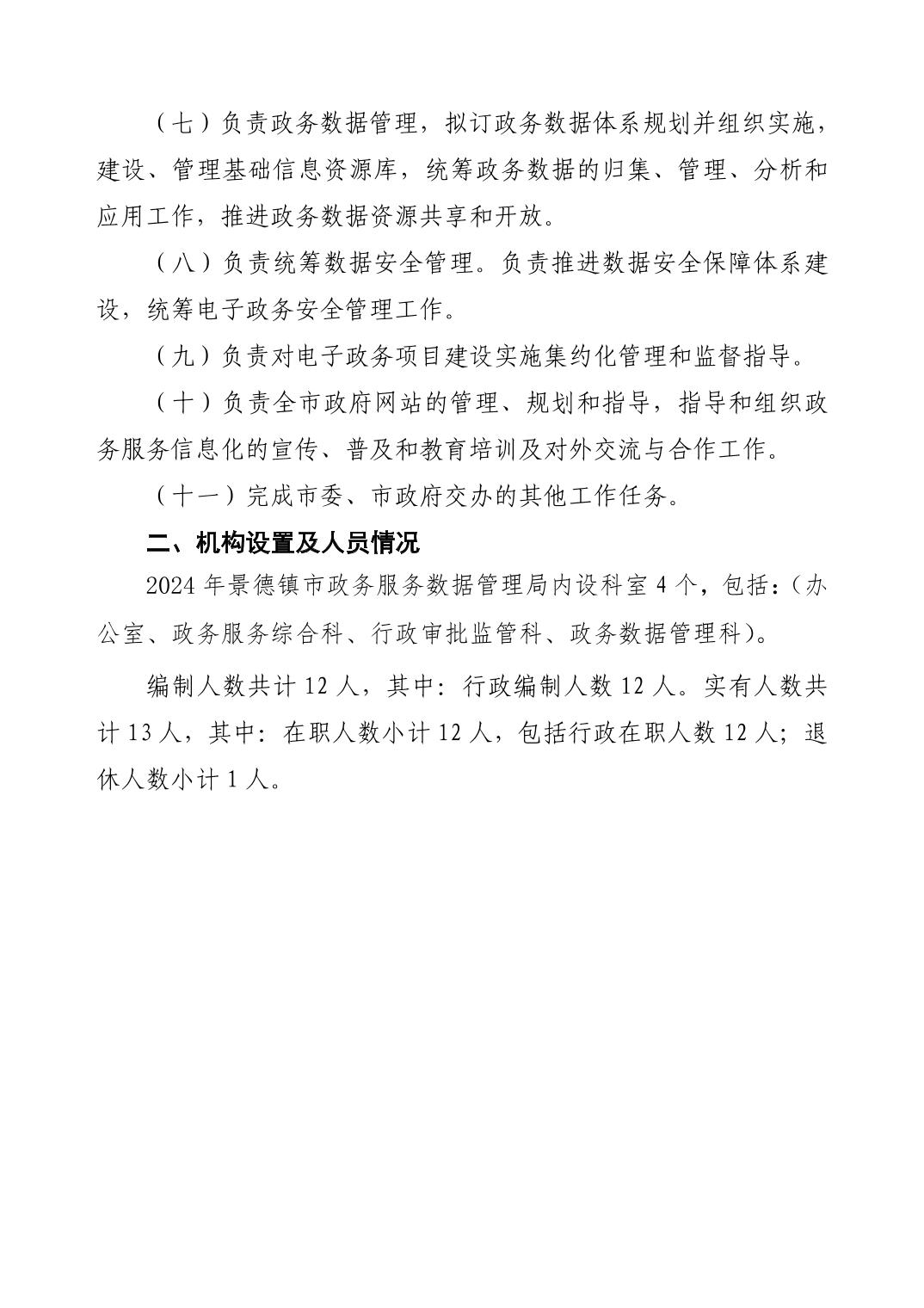 景德镇市政务服务数据管理局2024年单位预算