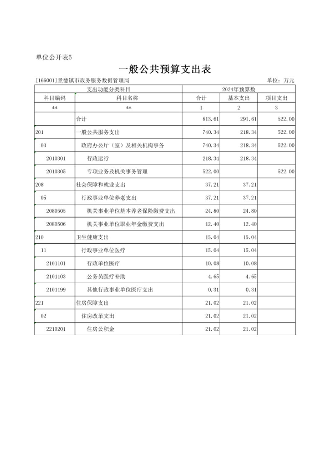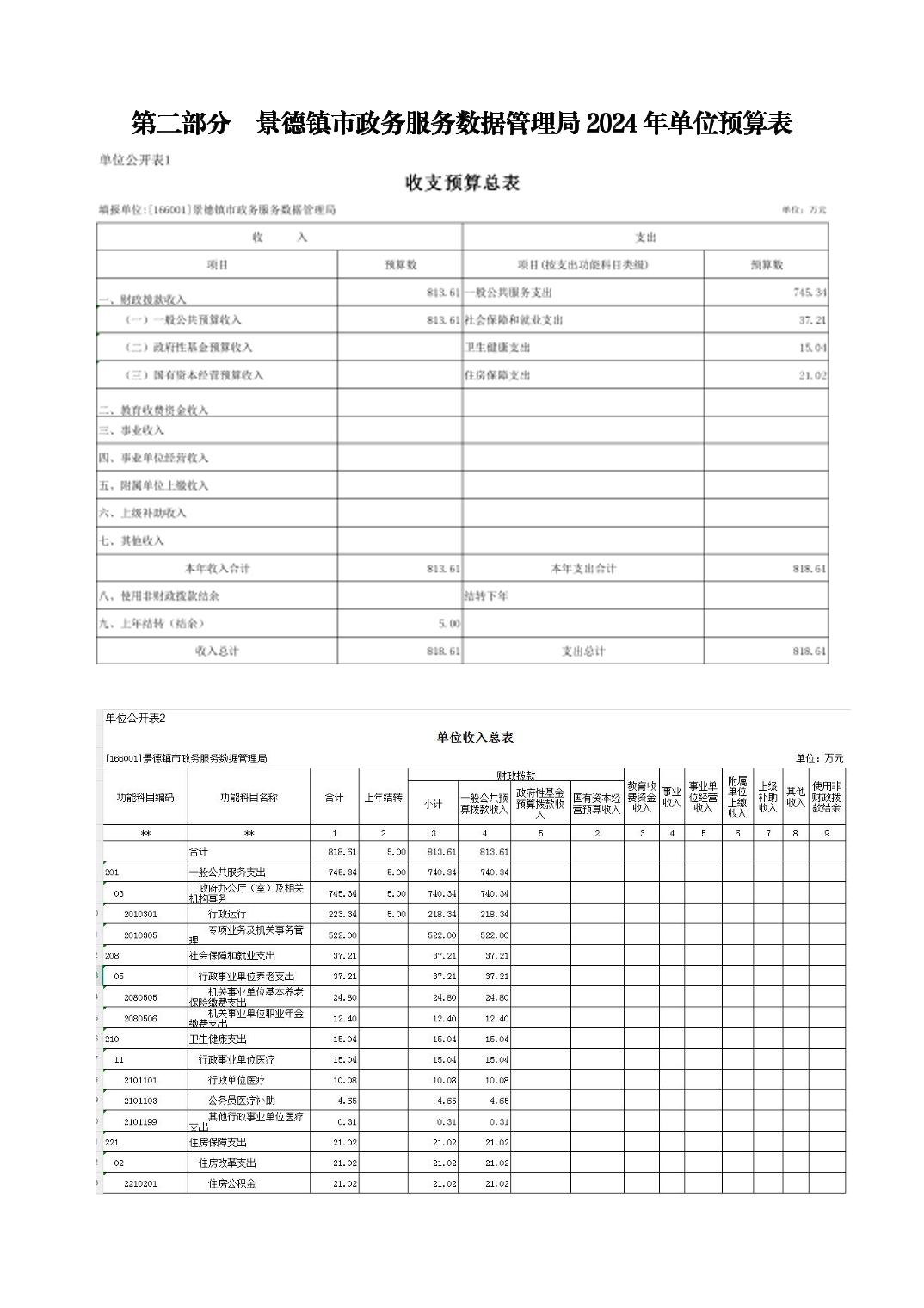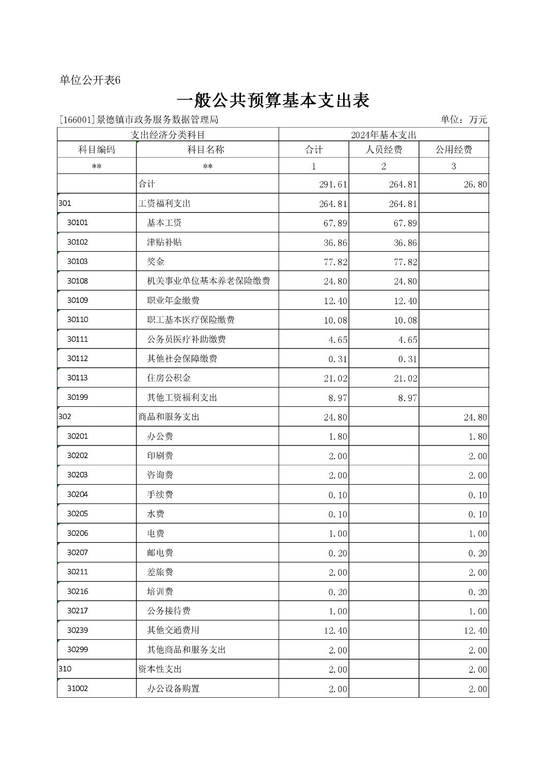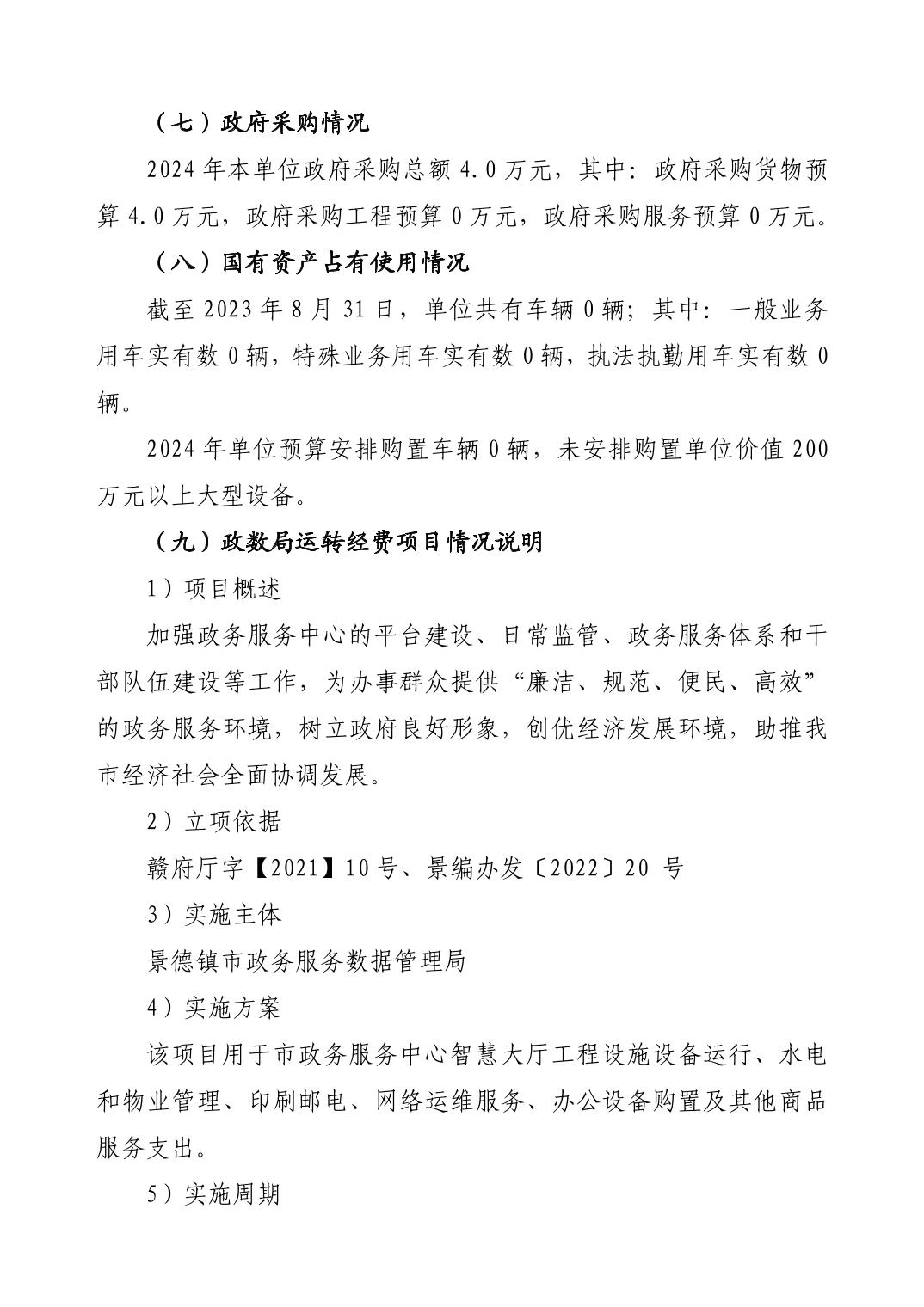 景德镇市政务服务数据管理局2024年单位预算