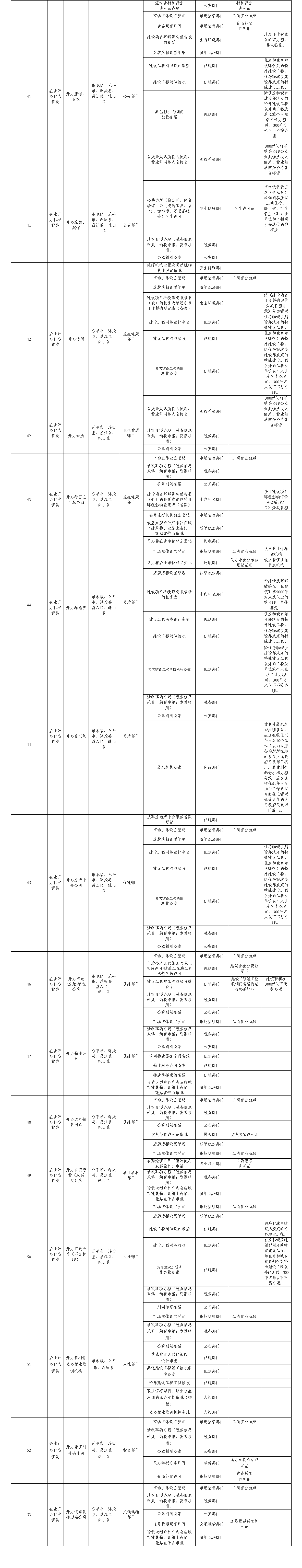 (三)一张表单。各牵头单位和配合部门共同负责梳理“一件事”涉及事项的表单,合并多个办理事项表格,明确表单要素规范、表单配置规范,积极推进表单精简化、标准化,通过流程优化和环节归并,实现“一件事” “多表合一、一表申报”。〔牵头单位:“一件事”所明确的牵头单位。配合单位:市直有关单位,各县(市、区)人民政府。完成时限:2022年4月底〕