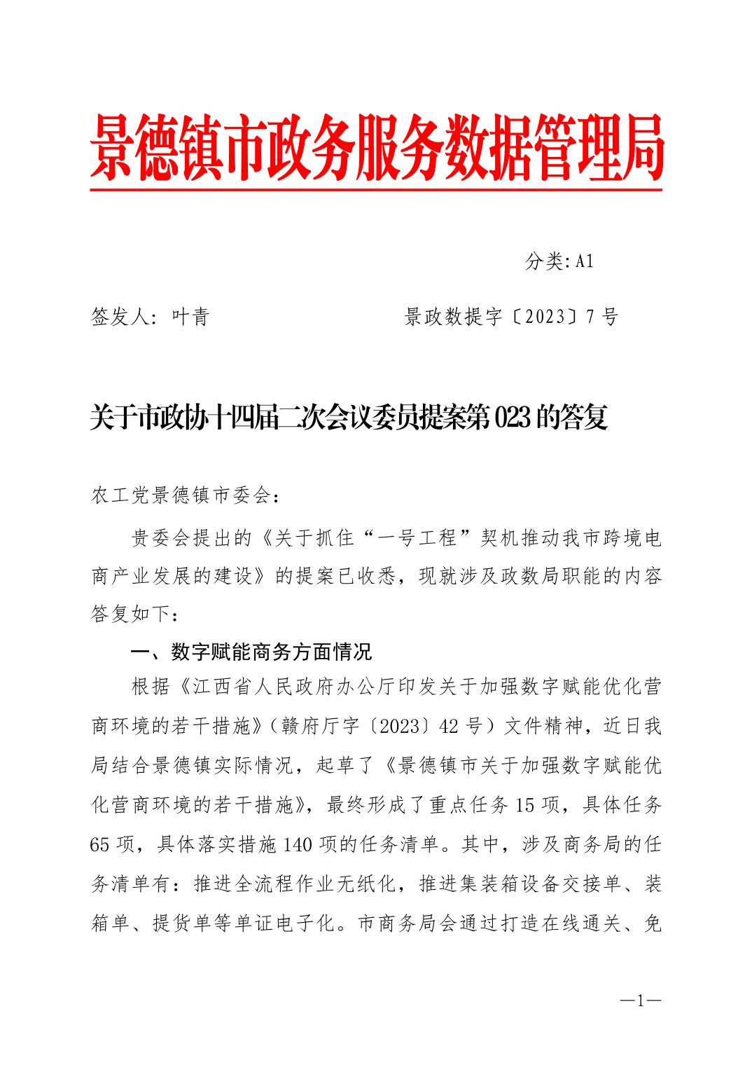 关于市政协十四届三次会议委员提案(第023号)的答复