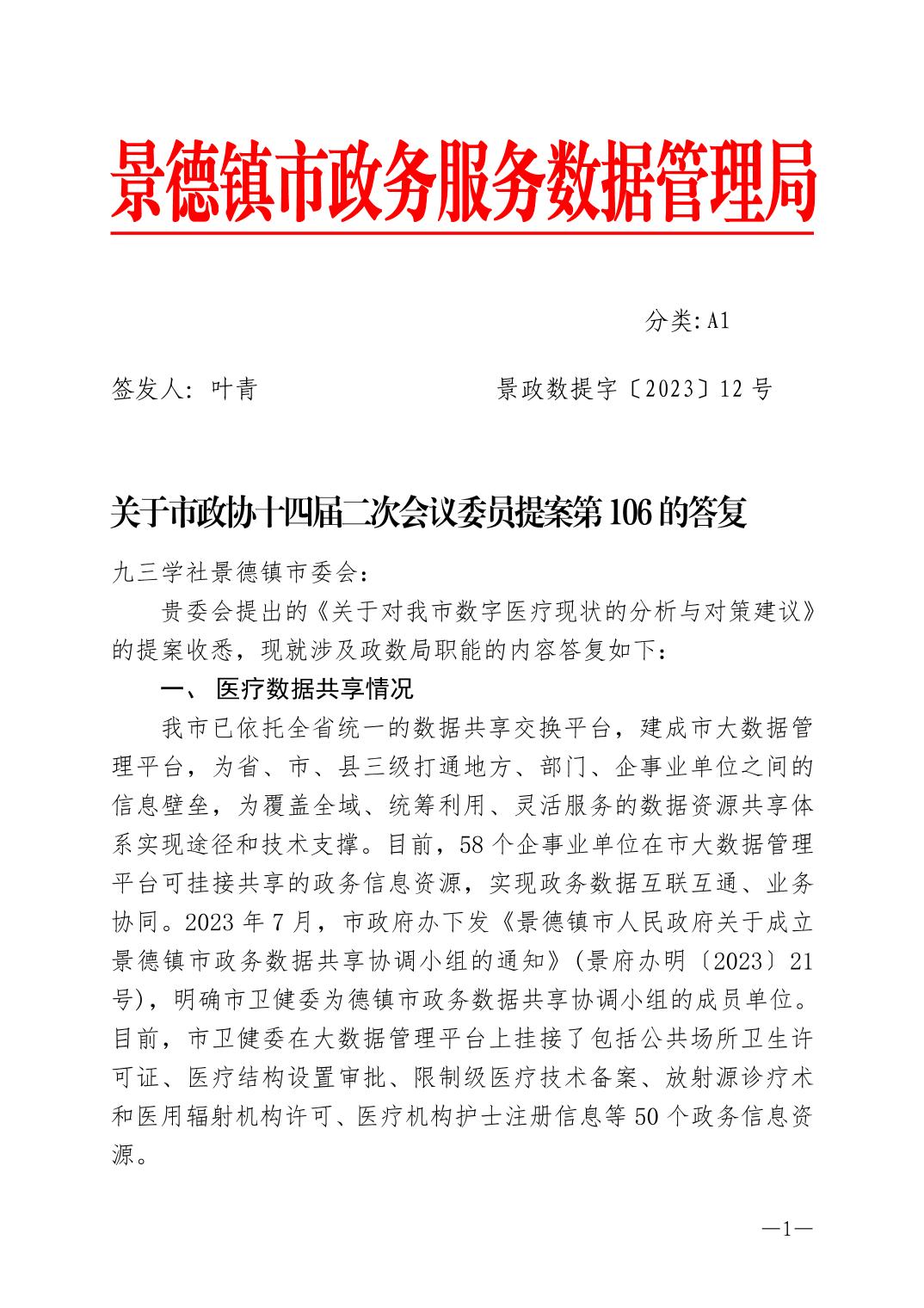 关于市政协十四届三次会议委员提案(第106号)的答复