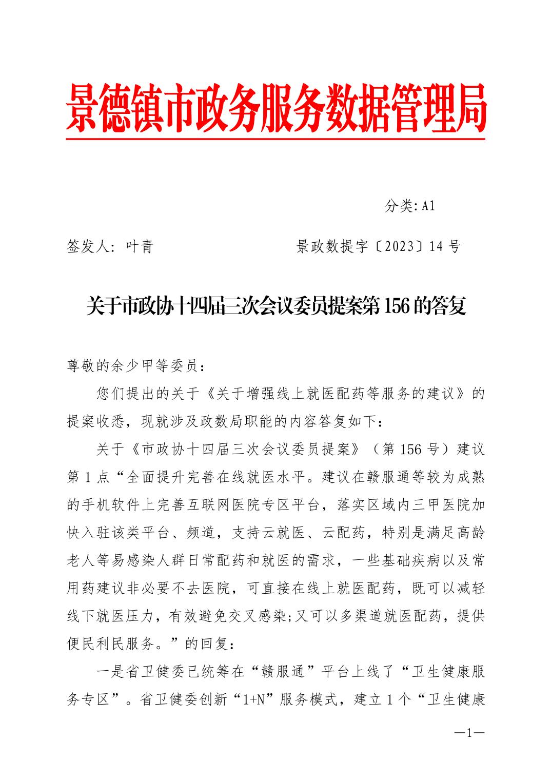 关于市政协十四届三次会议委员提案(第156号)的答复
