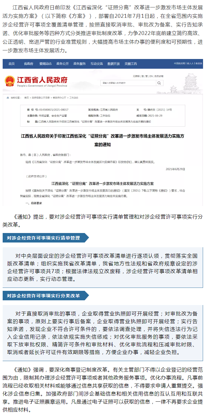 解读《江西省深化“证照分离”改革进一步激发市场主体发展活力实施方案》