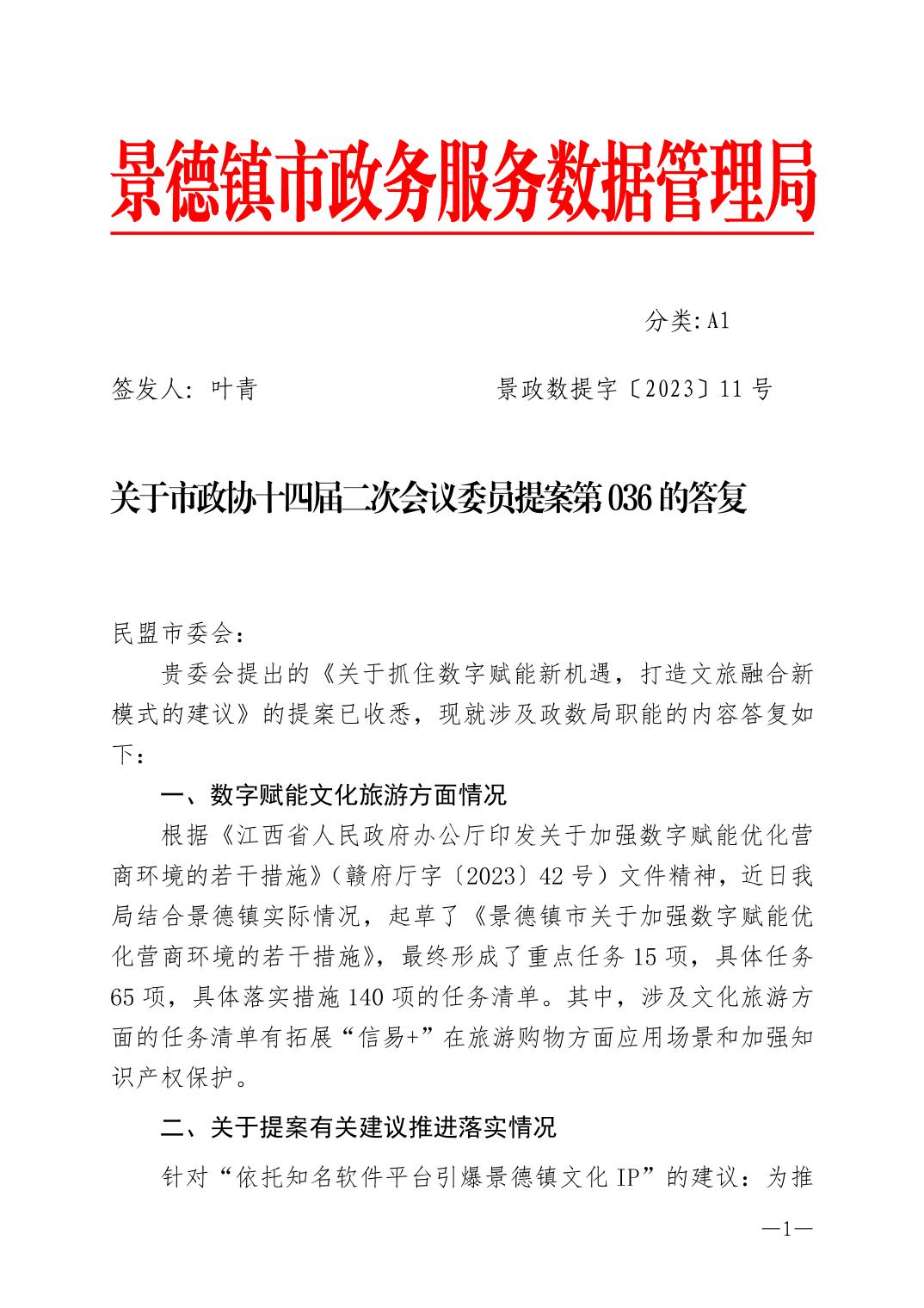 关于市政协十四届三次会议委员提案(第036号)的答复