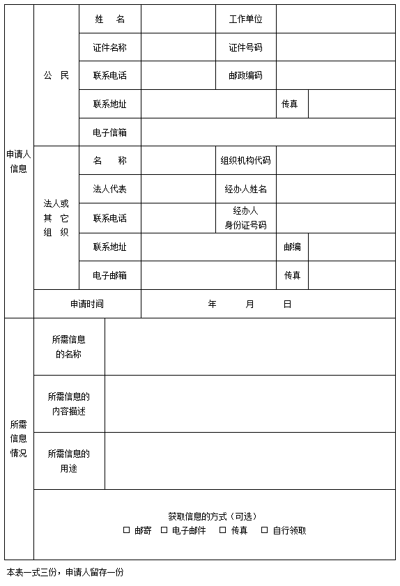 (2)通过信函、传真申请。申请人通过信函提出申请的,请在信封左下角注明“政府信息公开申请”的字样;申请人通过传真方式提出申请的,请相应注明“政府信息公开申请”的字样。