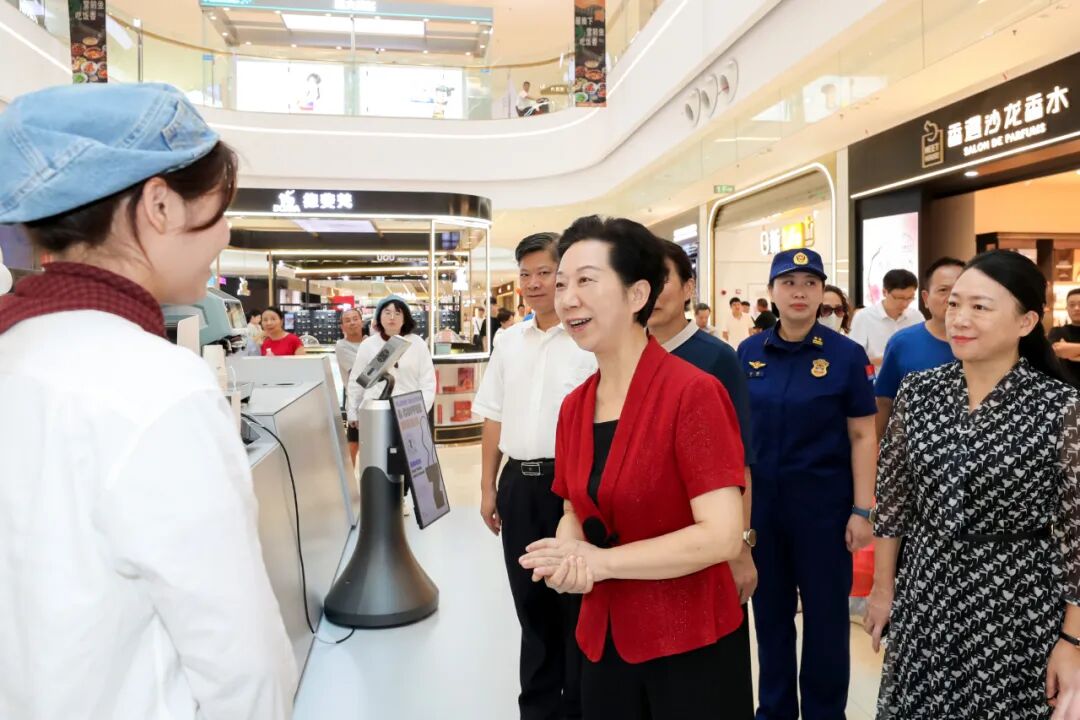 假日期间的宝龙广场,热闹非凡、人流如织,尽显假日的欢乐与烟火气。胡雪梅与相关负责人详细交流,仔细询问日常人流、销售以及收银模式等情况,并随机走入商户,了解员工消防安全培训、应急演练开展及消防安全责任制落实等工作情况。她强调,国庆、中秋是重要的消费节点,要坚持从供给和需求两端协同发力,更好满足群众多样化、品质化的消费需求;商场作为人员密集场所,要时刻绷紧安全这根弦,严格落实消防安全、电梯安全等管理措施,提高员工整体安全意识,保障人民群众生命财产安全。