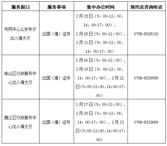 二、出入境窗口集中办公时间安排