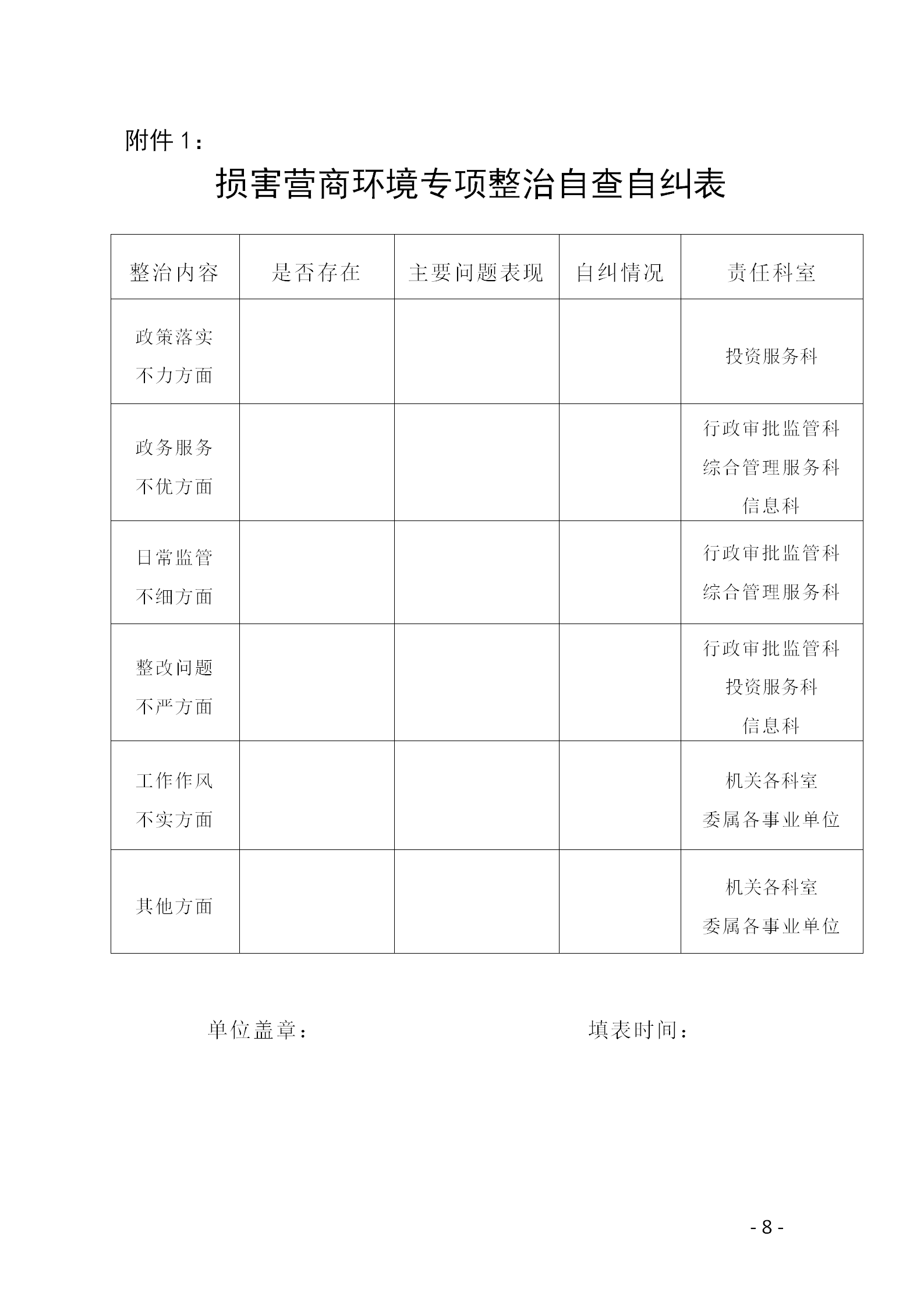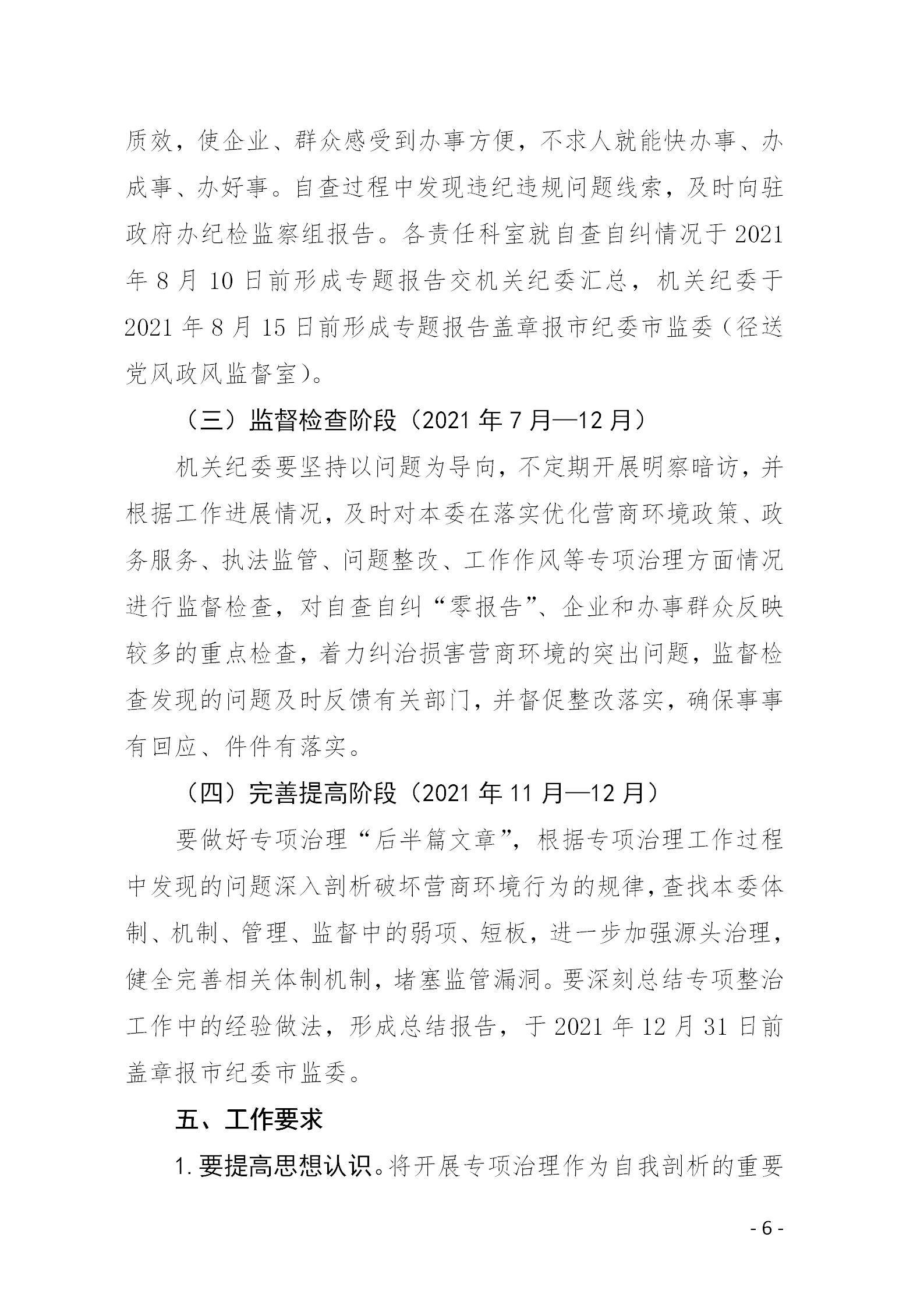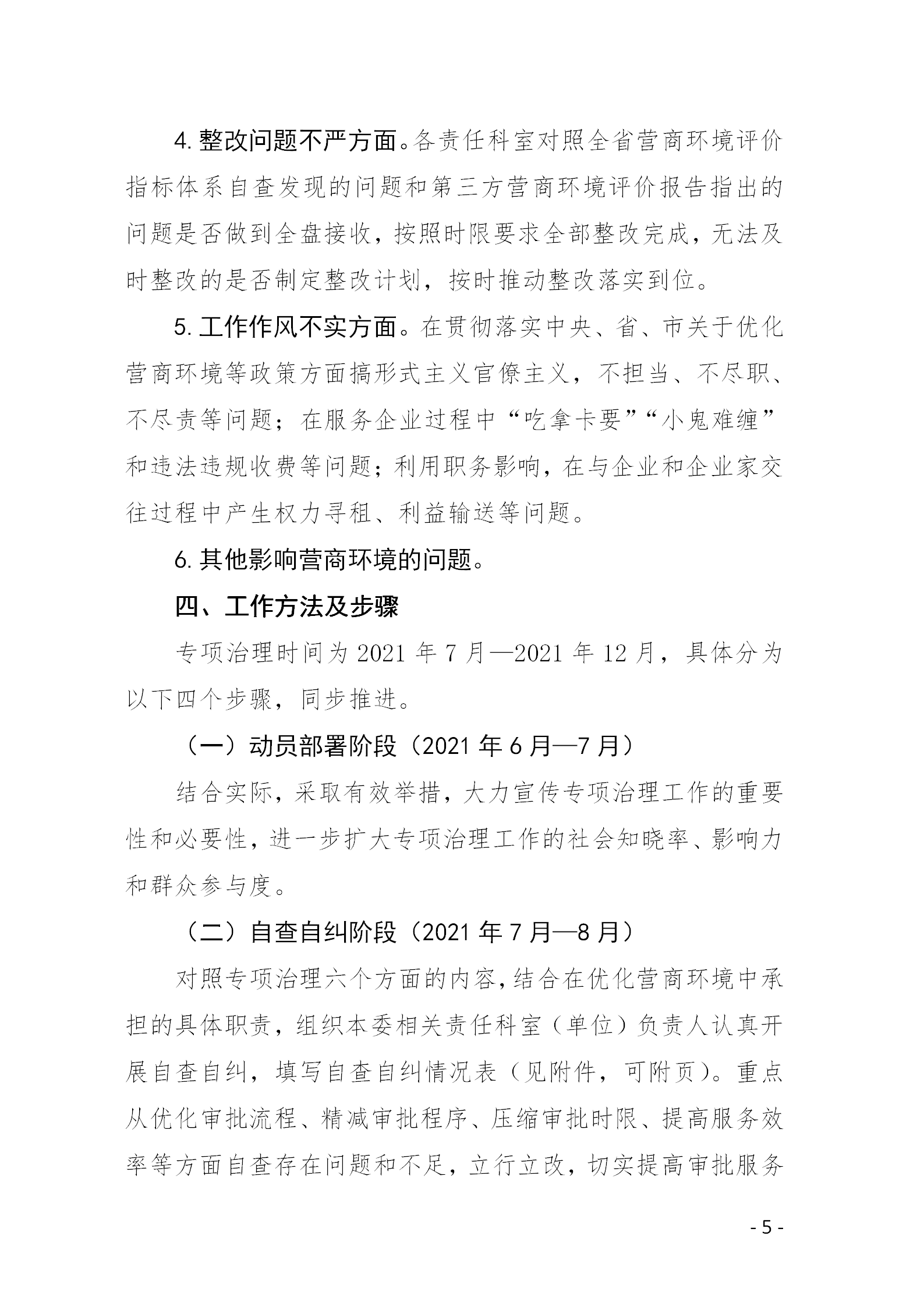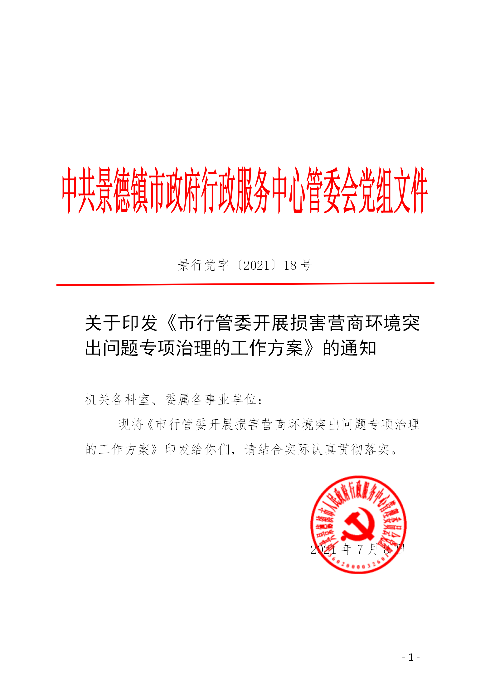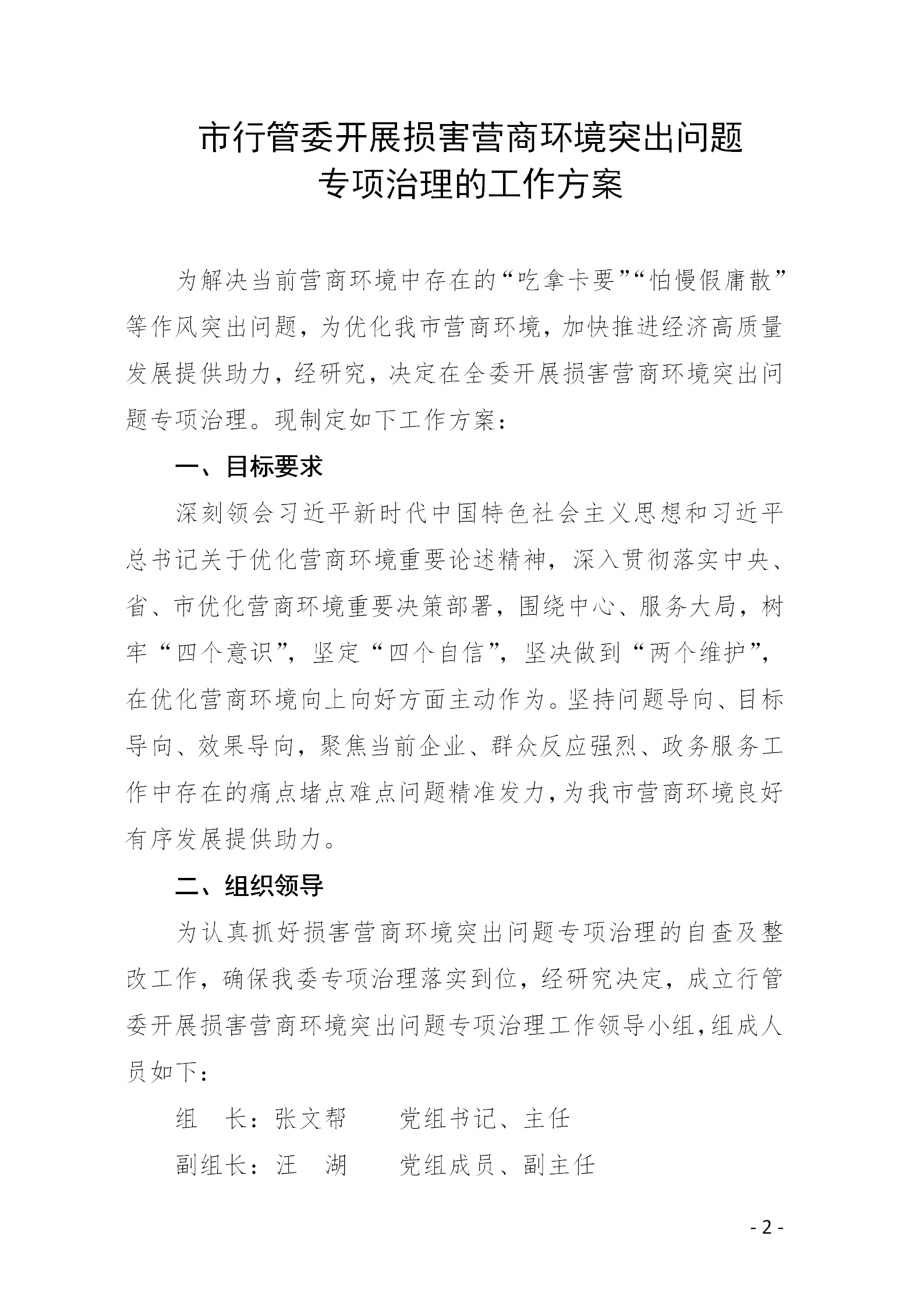 关于印发《市行管委开展损害营商环境突出问题专项治理的工作方案》的通知