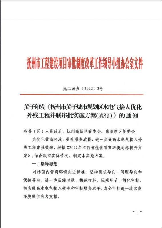 2023年以来,抚州市推动“最多跑一次”改革向公共服务领域延伸,在不动产登记水电气网视联合过户基础上,整合优化水电气网报装业务,推行水电气网报装“一站式”“两先行”“三个零”改革,通过构建线上报装模块、打造线下联办窗口,实现水电气网报装全流程网上办、就近办、即时办,有效提升水电气网报装服务水平,实现工程建设项目审批与水电气报装流程的高效衔接,保障项目建设顺利推进。