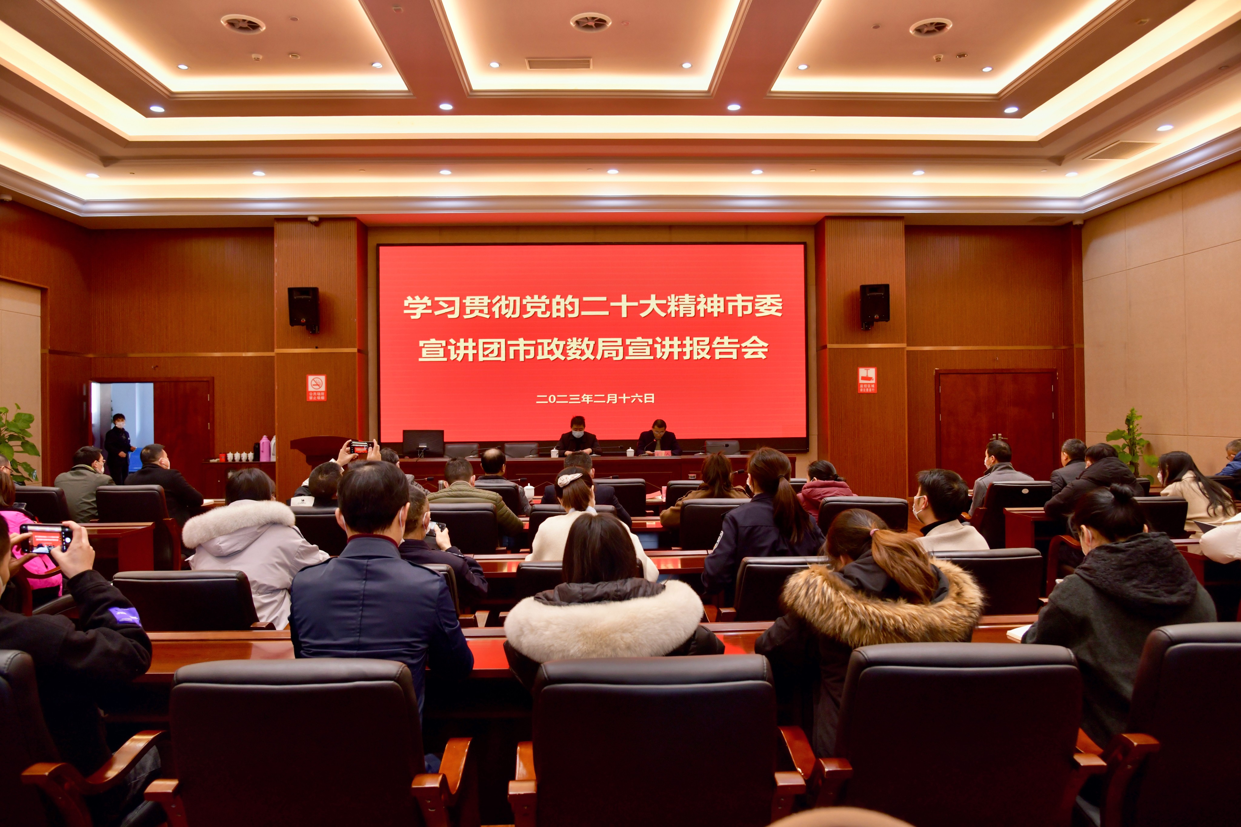 2月16日,市委宣讲团学习贯彻党的二十大精神宣讲报告会在市政数局举行。市委宣讲团成员、市委政法委政治部主任翁韶华作宣讲。